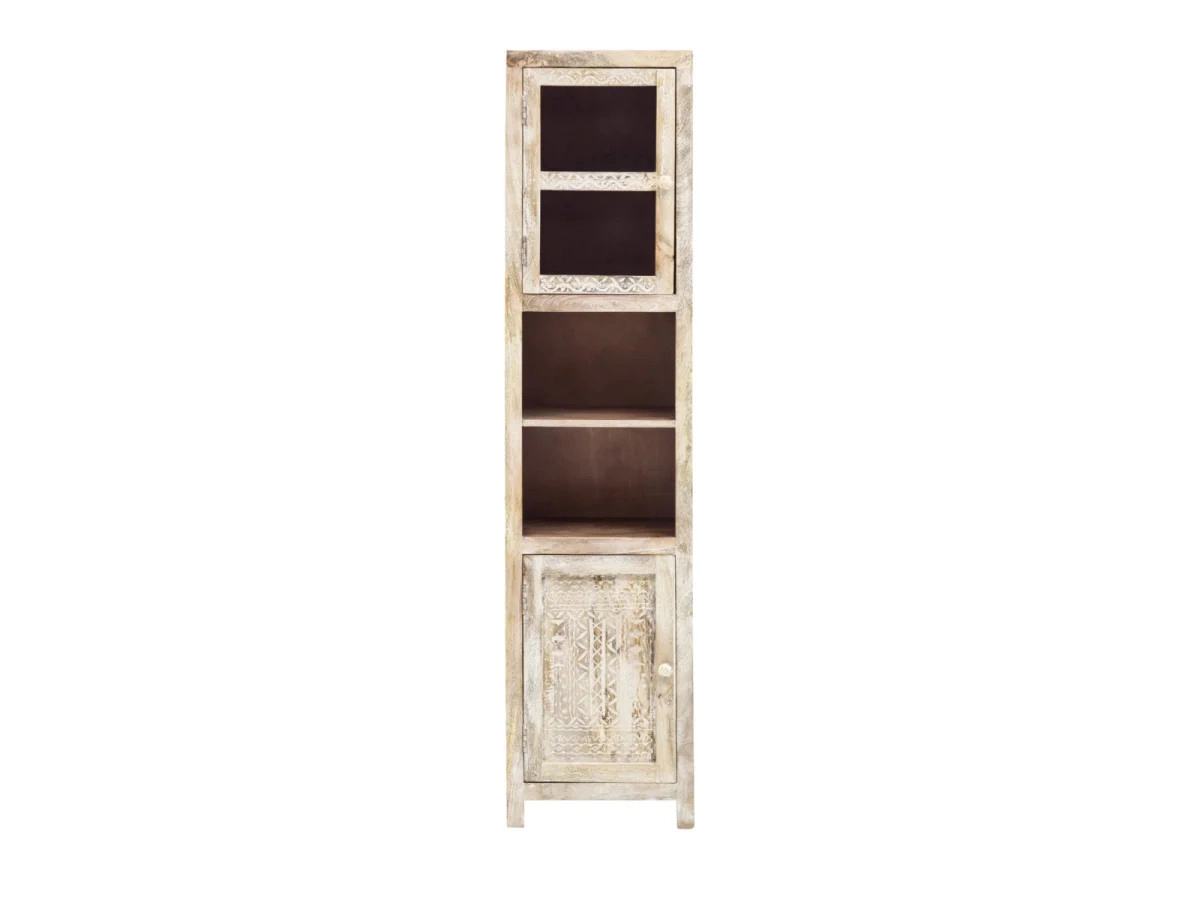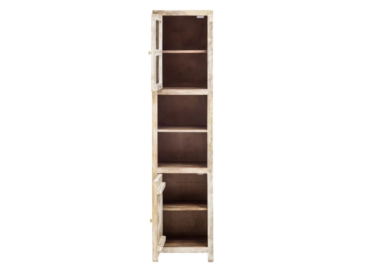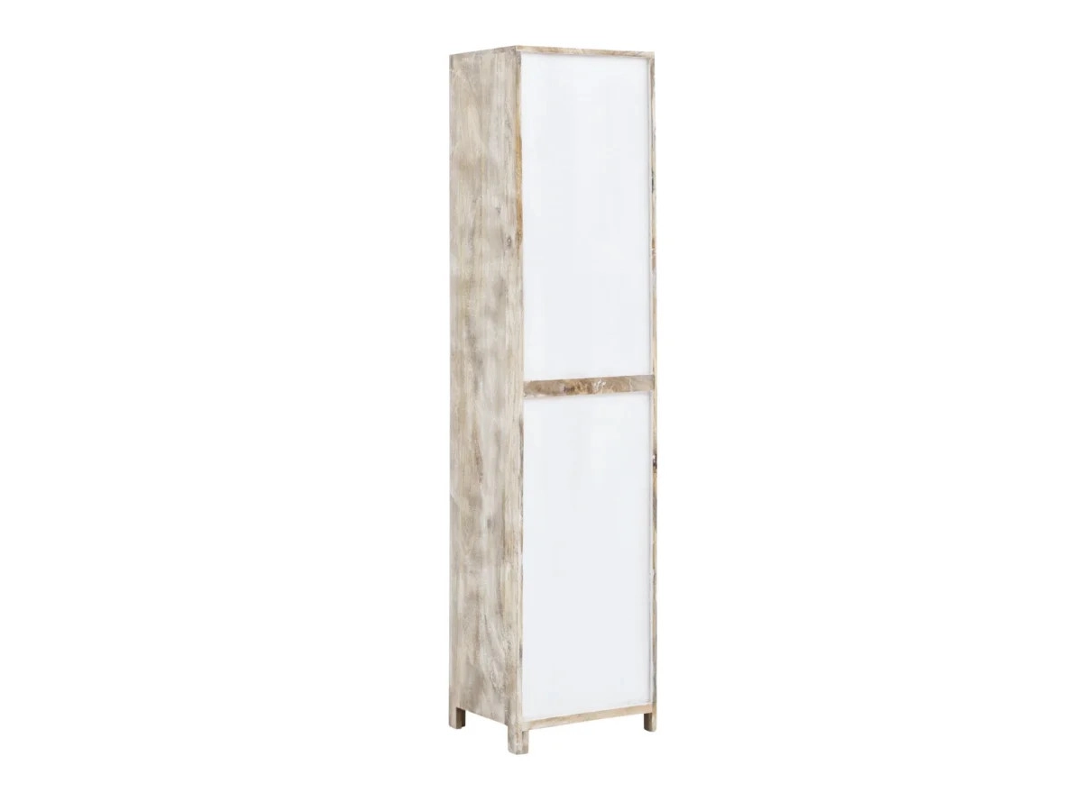 Objemte přirozenou krásu a robustnost s naší koupelnovou skříňkou Bitna, vyrobenou z kvalitního mangového dřeva s lakovaným povrchem, který zvýrazňuje její přírodní barvu. Tento elegantní úložný prvek o rozměrech 43×35×180 cm přinese do vaší koupelny styl i funkčnost.