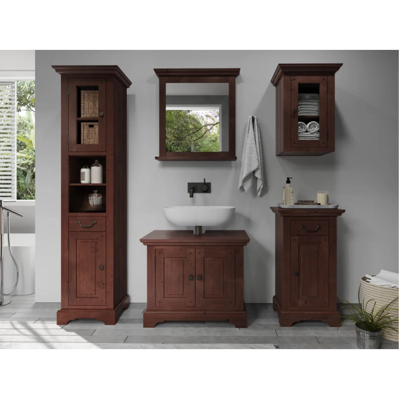 Tato elegantní koupelnová skříňka Kenya, vyrobená z kvalitní borovice a MDF, dodá vaší koupelně teplý a přírodní vzhled. Hnědý lakovaný povrch nejenže chrání skříňku před vlhkostí, ale také jí dodává moderní a čistý vzhled, ideální pro každodenní použití.