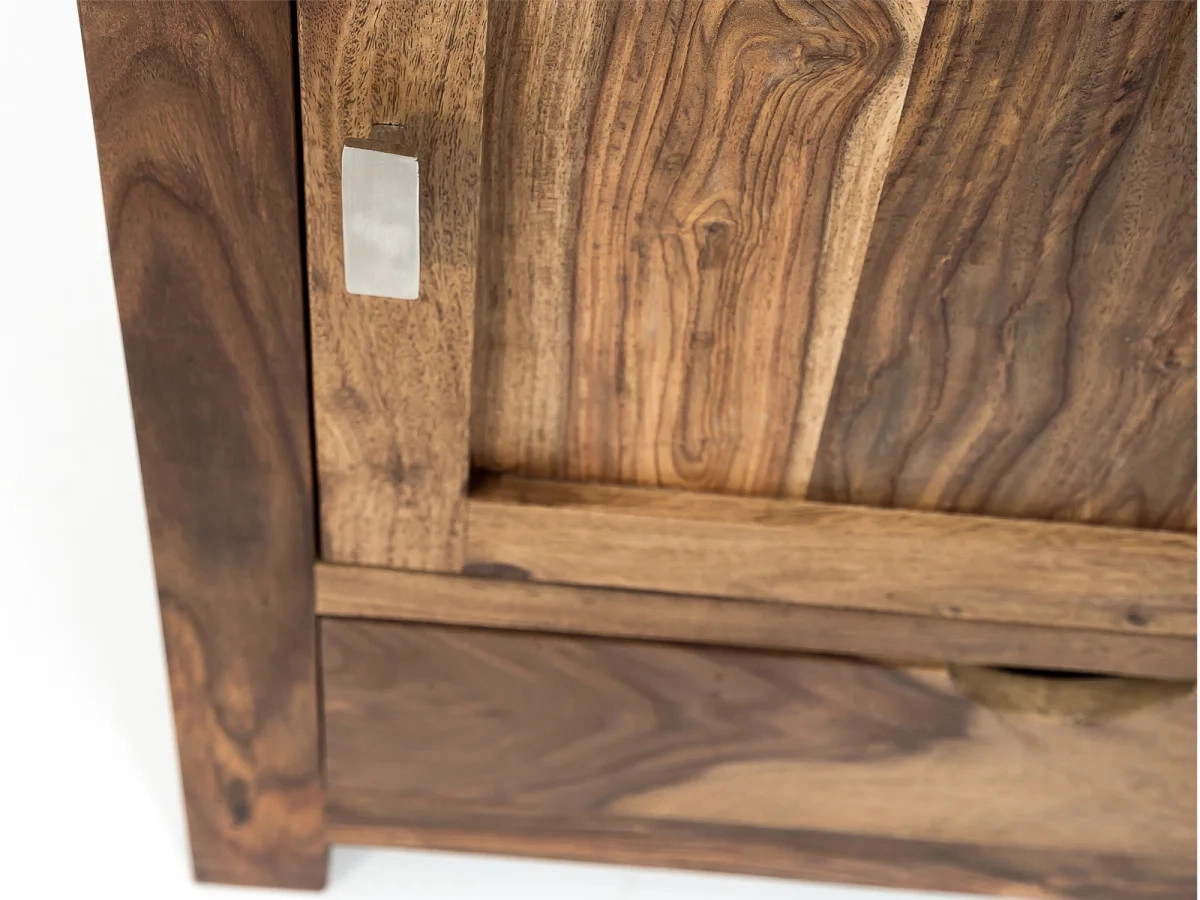 Masivní koupelnová skříňka Lagos vyrobená z kvalitního palisandru v hnědé barvě přinese do vaší koupelny nádech elegance a tradičního stylu. Lakovaný povrch o rozměrech 60×32×80 cm nejen zvýrazňuje přirozenou krásu dřeva, ale také zajišťuje dlouhou životnost a snadnou údržbu.