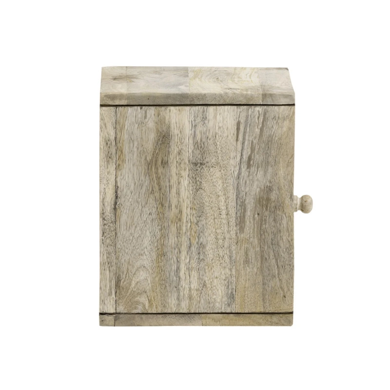 Objevte kouzlo přírodního designu s koupelnovou skříňkou Alcudia, vyrobenou z kvalitního mangového dřeva s ochranným lakovaným povrchem. Tato robustní skříňka v přírodní barvě dodá vaší koupelně teplý a elegantní vzhled, zatímco její kompaktní rozměry (30 cm x 25 cm x 30 cm) zajistí, že se vejde i do menšího prostoru.