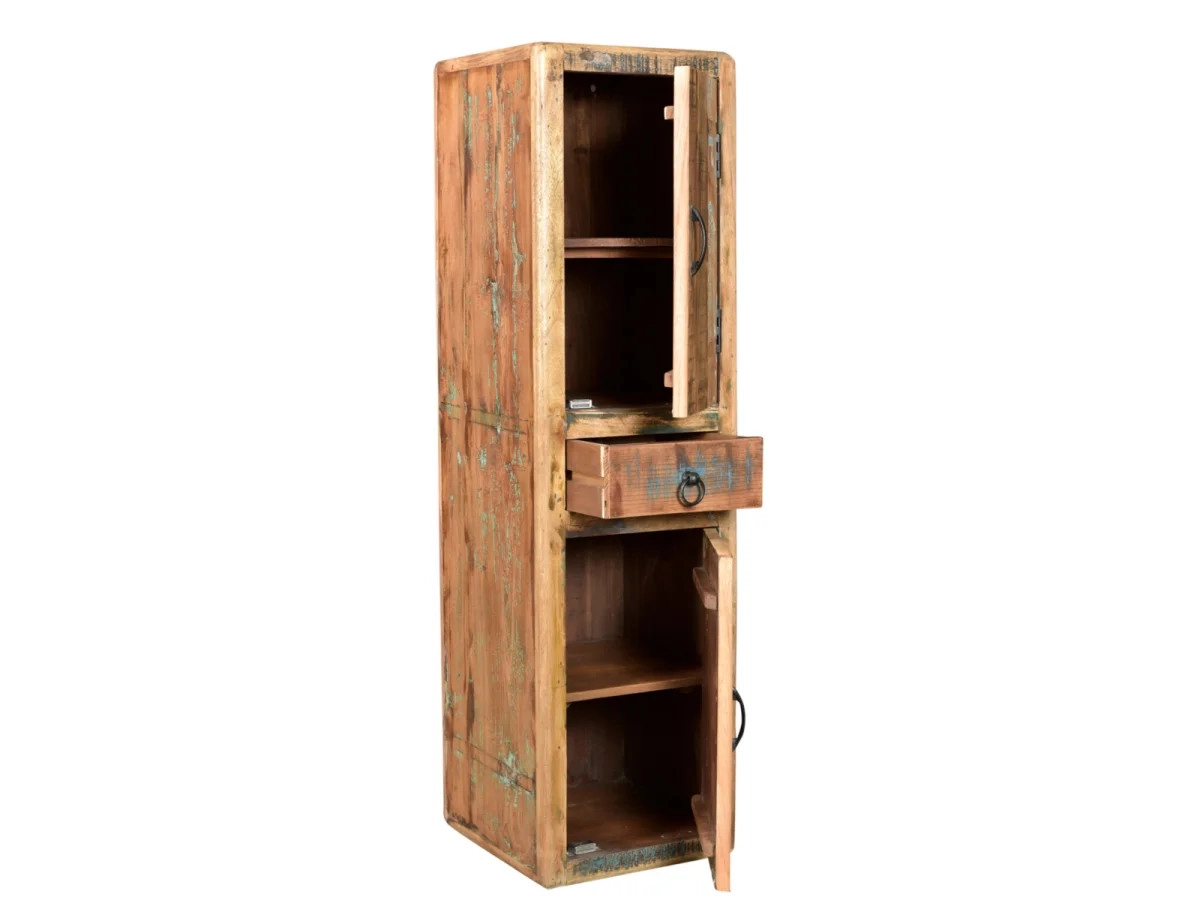 Objevte kouzlo masivní koupelnové skříňky Kalkata, která je vyrobena z recyklovaného dřeva a zaujme svým vícebarevným lakovaným designem. Tento unikátní kus nábytku o rozměrech 35×35×125 cm nejen skvěle vypadá, ale také nabízí praktické úložné řešení pro vaši koupelnu.