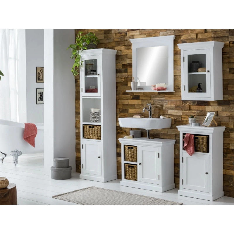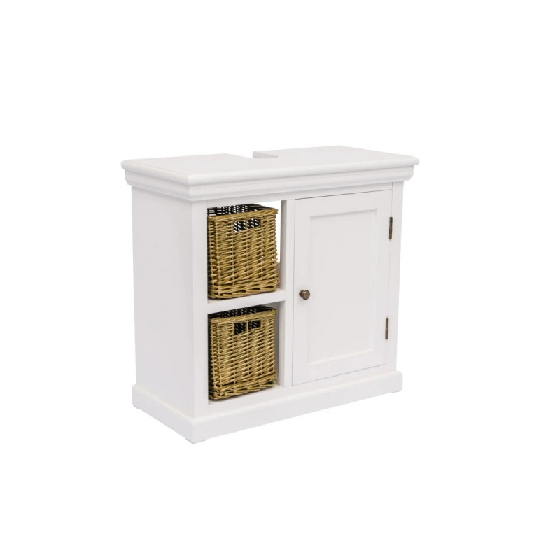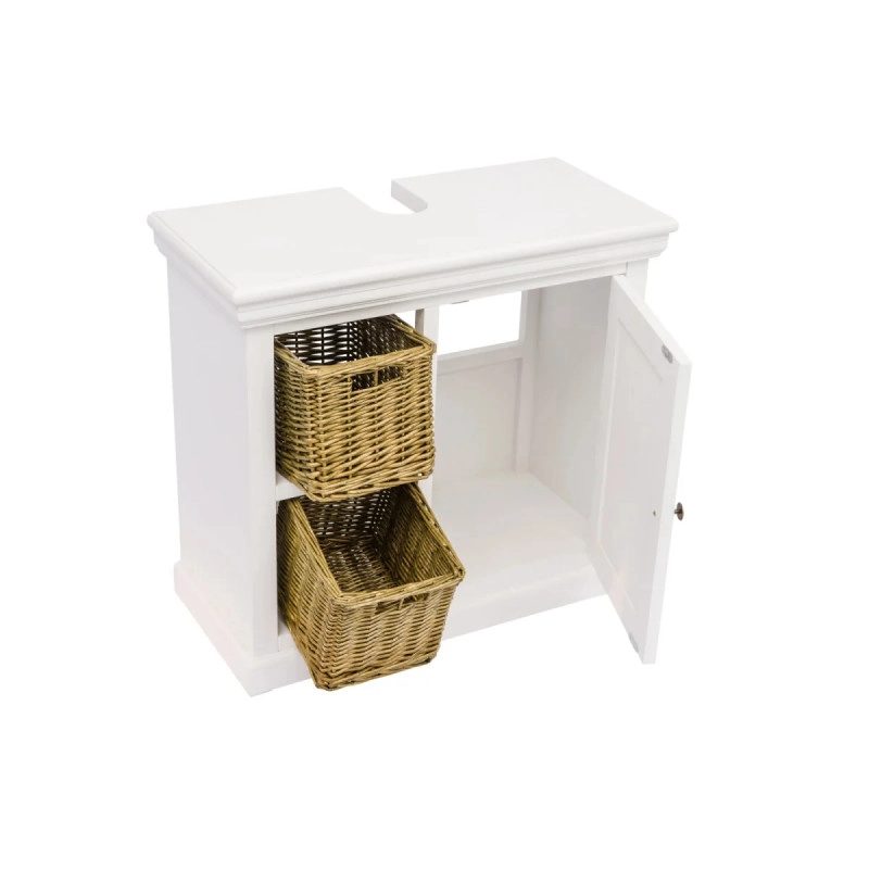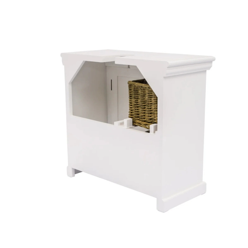 Elegantní a praktická skříňka pod dřez Bogota v bílé barvě přinese svěží a moderní vzhled do vaší koupelny. Tento kus nábytku, vyrobený z kvalitního lakovaného MDF, nabízí dostatek úložného prostoru ve svých rozměrech 65×30×60 cm, což z něj činí ideální řešení pro organizaci koupelnových potřeb.