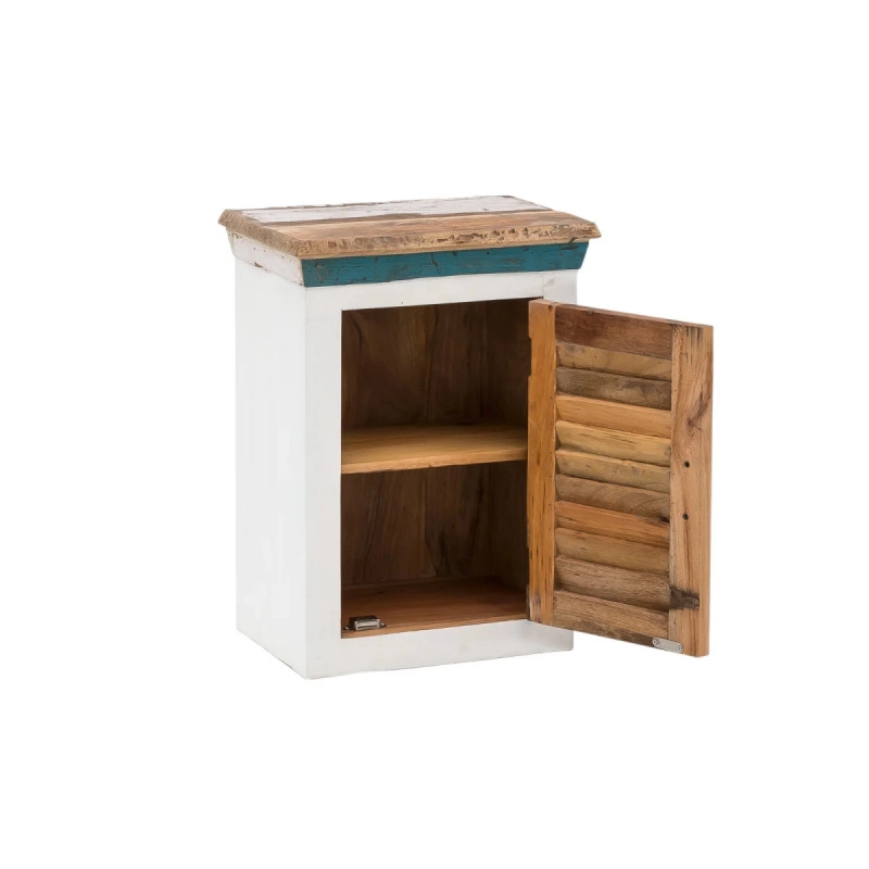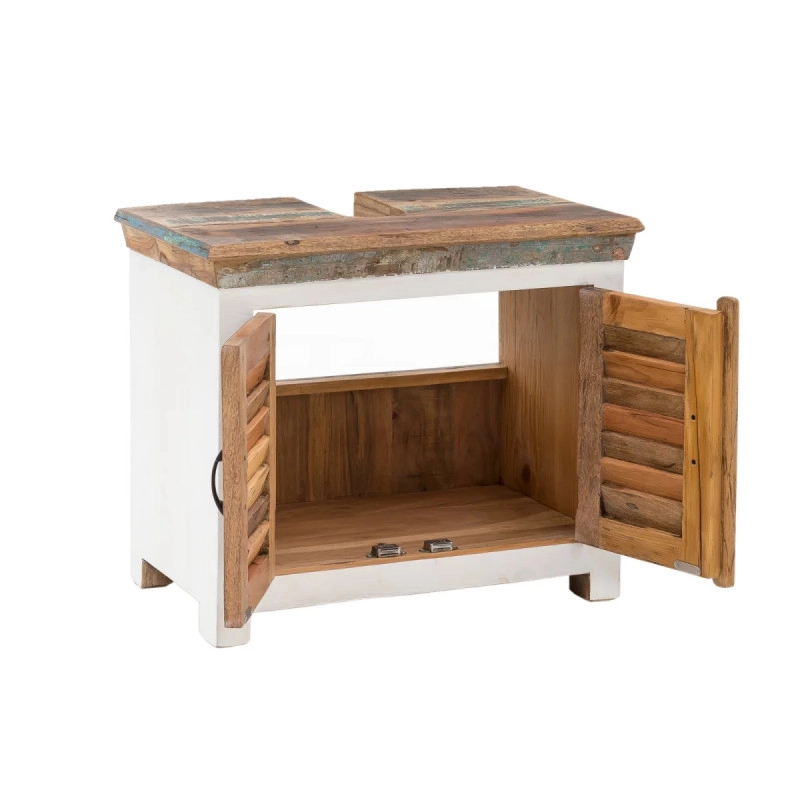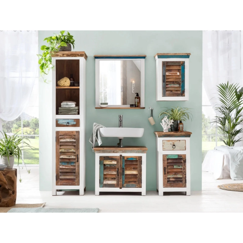 Přineste do své koupelny kus přírody s koupelnovou skříňkou Perth, vyrobenou z lakovaného recyklovaného dřeva. Tento originální kousek v bílé s barevnými akcenty nejen prakticky uspořádá vaše potřeby, ale také dodá prostoru svěží a moderní vzhled.