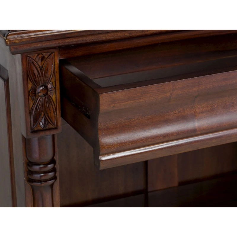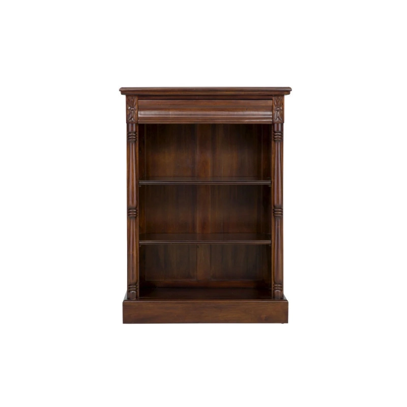 Objednejte si do svého obývacího pokoje tuto elegantní knihovnu Cambridge II, vyrobenou z prvotřídního mahagonového dřeva s luxusním lakovaným hnědým povrchem. Její rozměry 85×36×120 cm poskytují dostatek prostoru pro vaše knihy a dekorace, zatímco klasický design dodá vašemu interiéru nádech tradiční elegance.