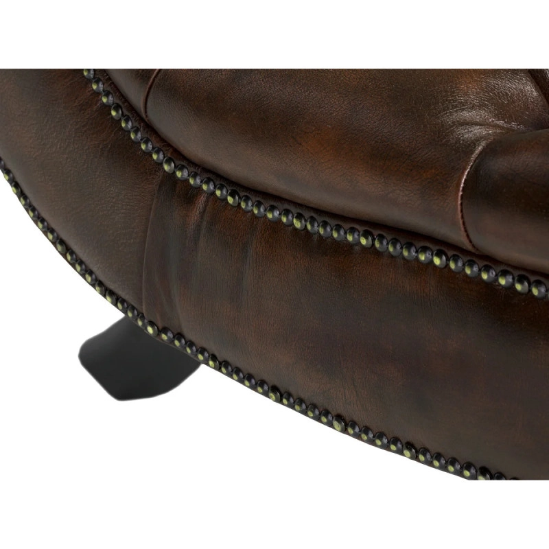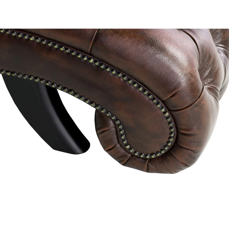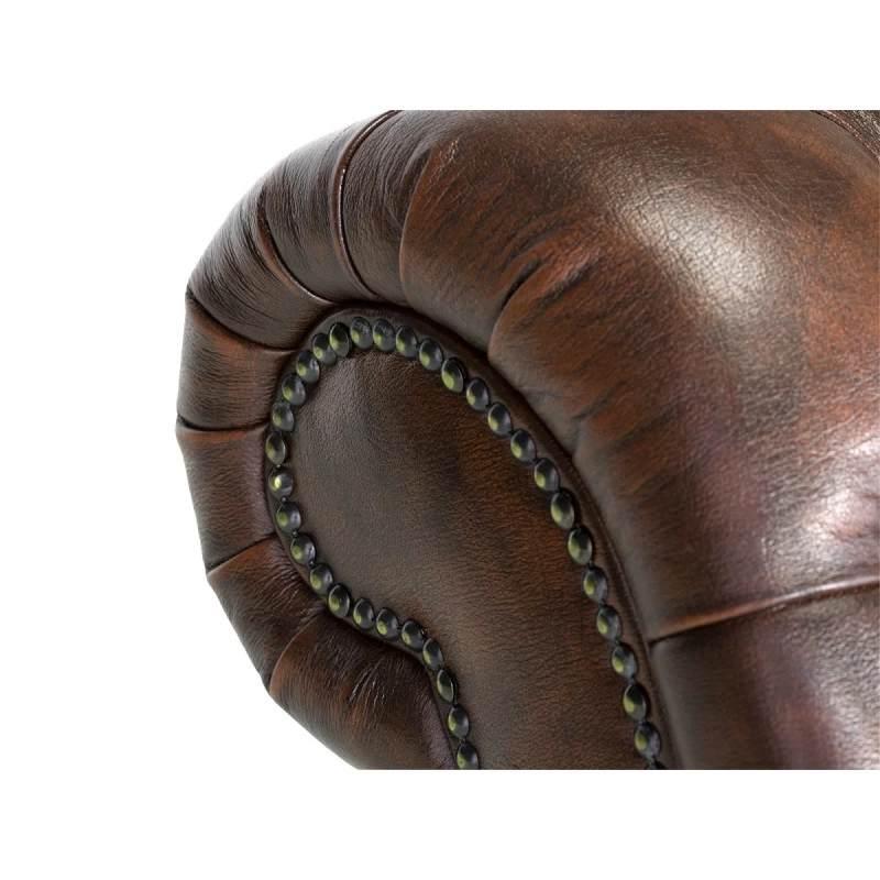 Objemná pohovka Chesterfield Bedford v klasickém designu, vyrobená z pravé hnědé kůže, dodá vašemu obývacímu pokoji nádech luxusu a pohodlí. Tento ikonický kousek s rozměry 76 cm × 175 cm × 90 cm kombinuje eleganci, kvalitu a komfort, ideální pro relaxaci i jako stylový doplněk vašeho interiéru.