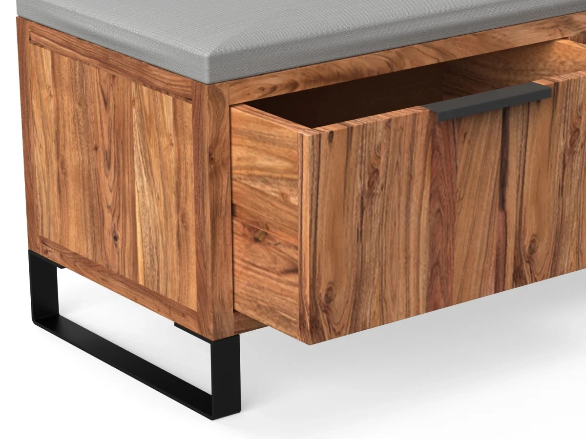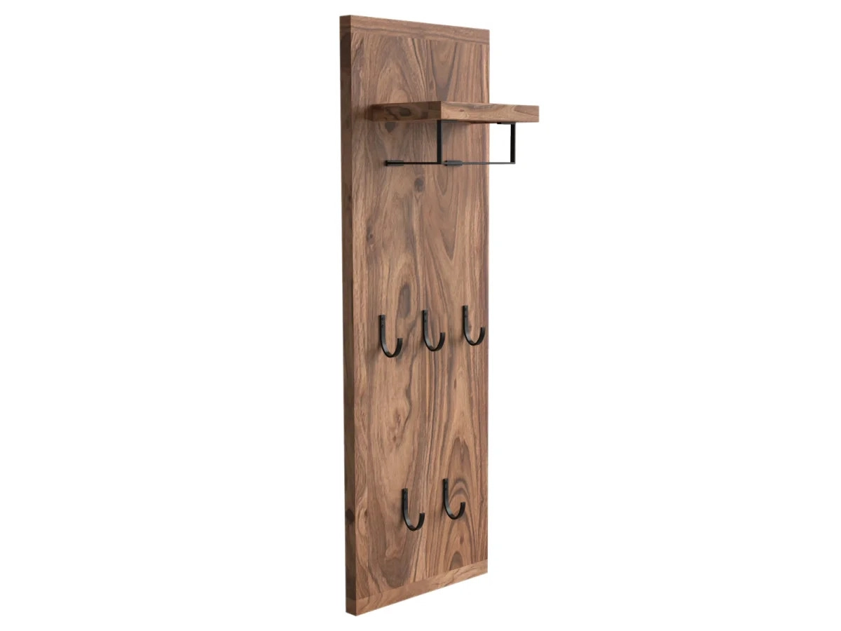 Předsíňová stěna Sydney I z akátového dřeva přináší do každého interiéru nádech elegance a tepla. Její hnědý lakovaný povrch nejenže skvěle vypadá, ale také chrání dřevo a zajišťuje jeho dlouhou životnost. Akátové dřevo je známé svou pevností a odolností, což znamená, že si stěna zachová svůj krásný vzhled i při každodenním používání. Tvar stěny je navržen tak, aby efektivně využíval prostor, a přitom nabízel dostatek úložného místa pro vaše bundy, klíče a další nezbytnosti. Tento kus nábytku se stane středobodem vaší předsíně, která bude působit útulně a stylově.