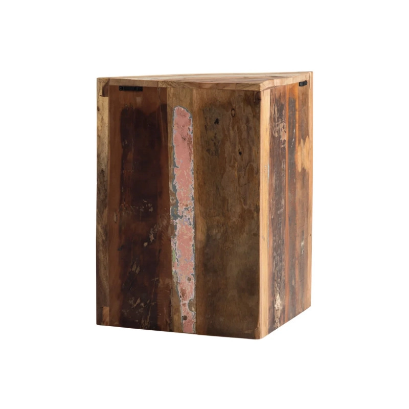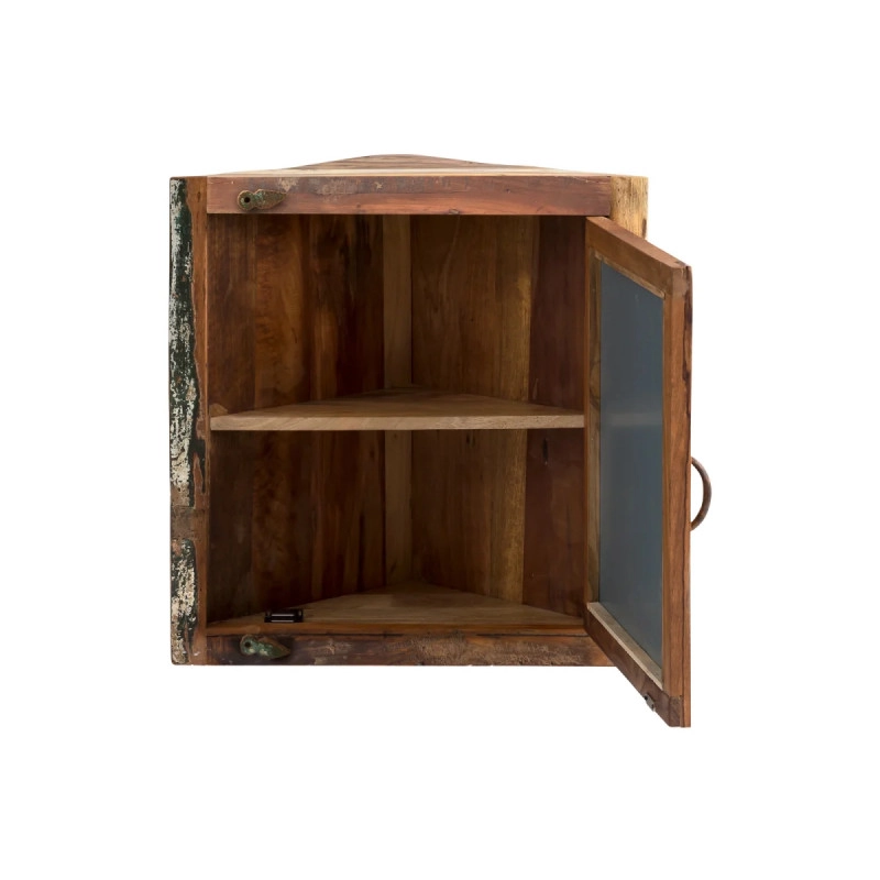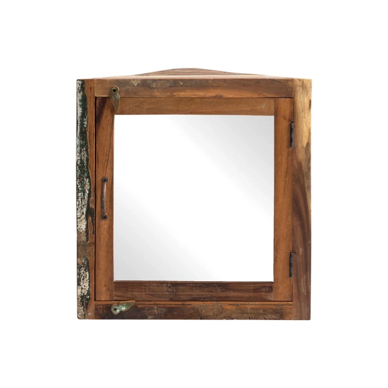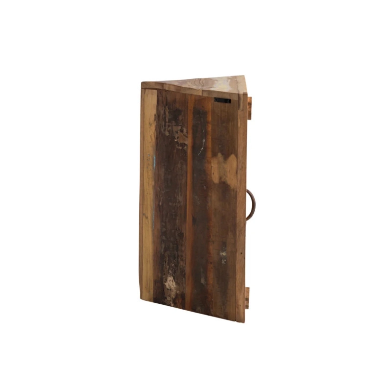 Objevte rustikální kouzlo masivní rohové skříňky Sumana, která je vyrobena z recyklovaného dřeva a zaujme svým lakovaným hnědým provedením. Ideální volba pro úsporné využití prostoru ve vaší koupelně, rozměry 65×30×65 cm poskytují dostatek úložného prostoru a integrované zrcadlo přidává praktičnost i eleganci.