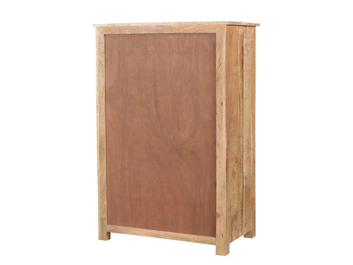 Mangové dřevo, známé svou tvrdostí a dlouhou životností, zaručuje, že komoda zůstane pevná a odolná po mnoho let. Lakovaný povrch navíc chrání materiál před drobnými škrábanci a usnadňuje údržbu, což ocení každý, kdo hledá kombinaci krásy a praktičnosti. Design komody s čistými liniemi a decentními detaily podtrhuje její univerzálnost – ať už ji využijete k uskladnění knih, dekorací nebo domácích doplňků, bude vaším spolehlivým parťákem v každodenním životě. Vnáší do prostoru pocit tepla a přírodního klidu, který si zaslouží každý obývací pokoj s duší.