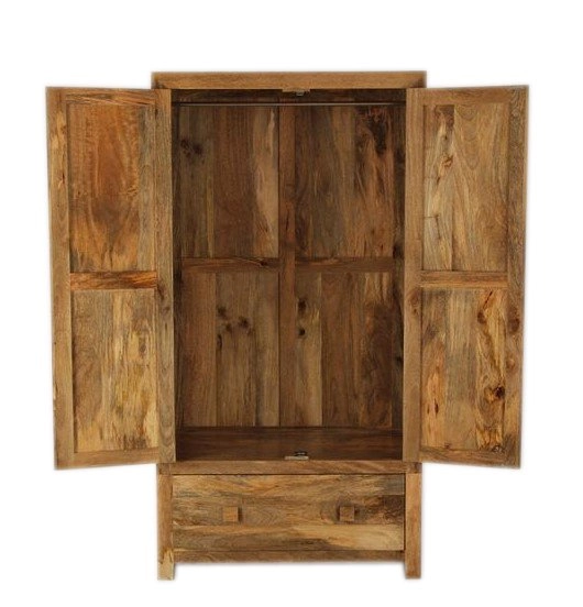 Tento kus masivního nábytku se vyznačuje jednou prostornou zásuvkou a velkým úložným prostorem, který je vybaven tyčí na zavěšení kabátů a bund. Skříň pochází ze srdce Indie a přináší s sebou přirozenou krásu tropického dřeva mango. Tento přírodní materiál spojuje odolnost s jemnými, exotickými odstíny, které přispívají k útulné a nadčasové atmosféře vašeho interiéru. Masivní nábytek je vždy skvélé volbou pro vaše domácí prostory.