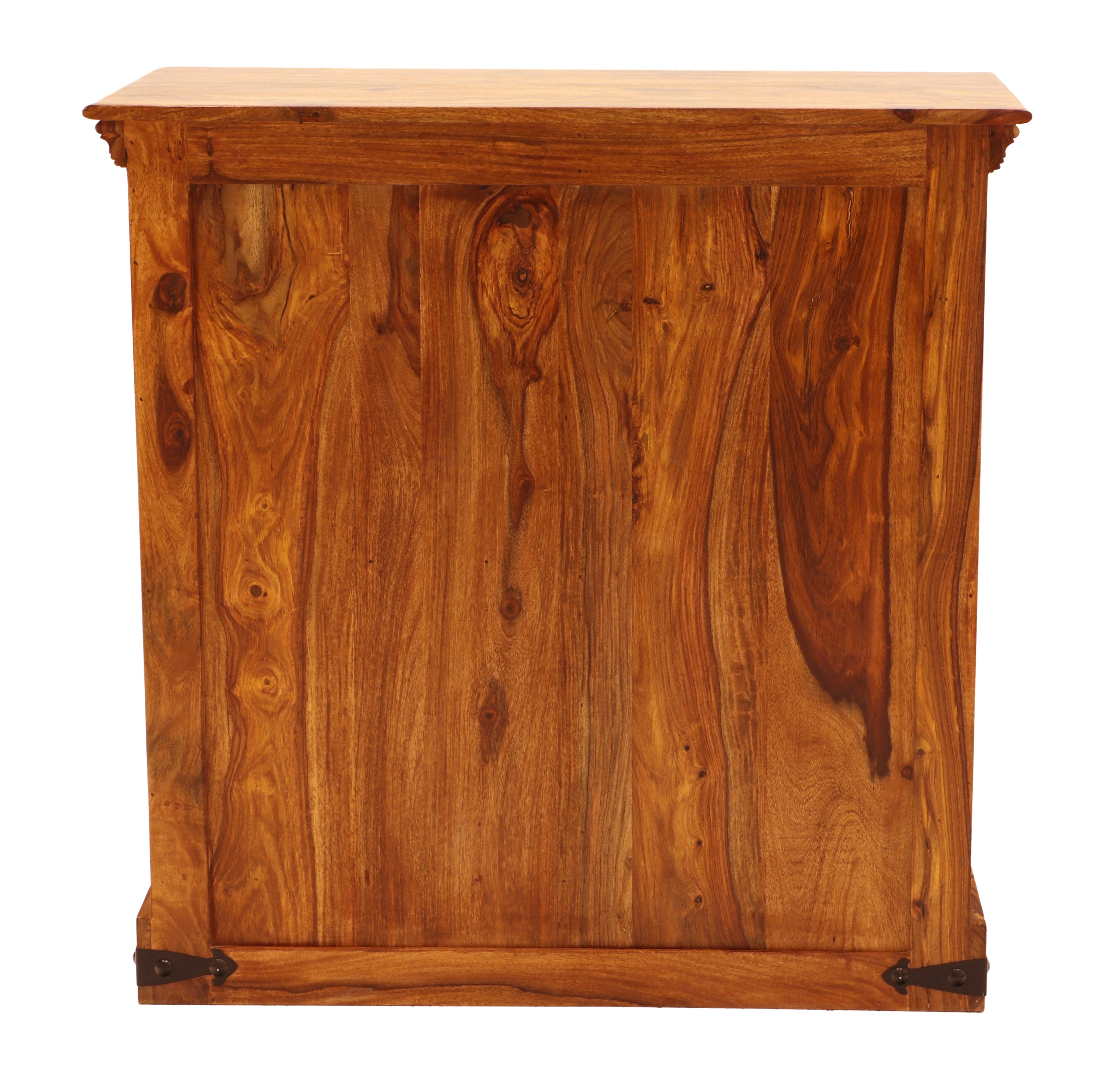 Masivní komoda z dřeva palisandr o rozměrech 90x90x45 cm je dokonalým příkladem elegance a funkčnosti spojené s tradičním indickým stylem. Vyrobena z prémiového palisandrového dřeva z Indie, tato masivní komoda zaujme svým výrazným designem a pevnou konstrukcí. Je ideálním kusem nábytku pro vaši předsíň či jiný interiér, kde potřebujete kombinovat estetiku s praktičností.