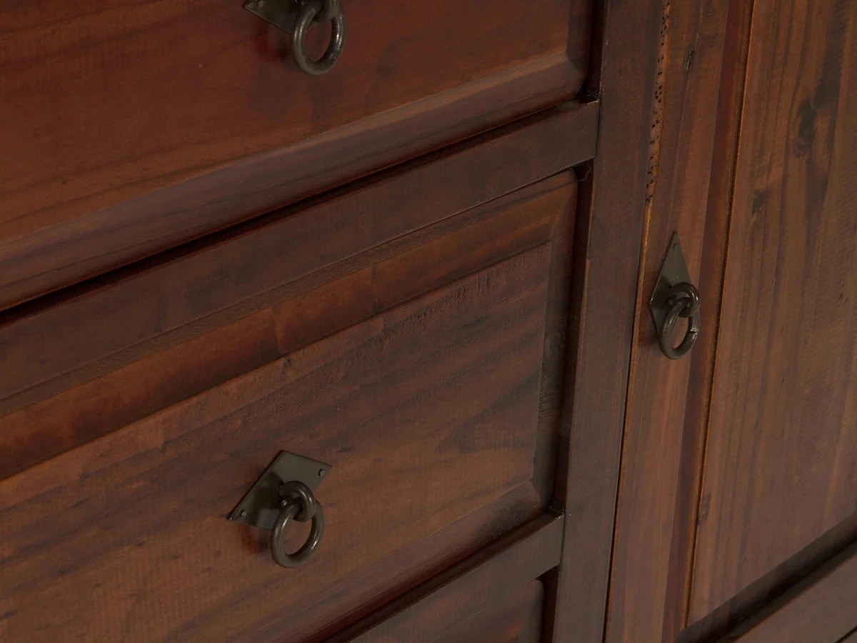 Zasloužíte si nábytek, který oslavuje přirozenou krásu a pevnost materiálu. Masivní komoda Catana z borovice je dokonalým příkladem řemeslného mistrovství, které přináší teplo a eleganci do každého obývacího pokoje. Tento kus nábytku je vyroben z kvalitní borovice, dřeviny známé svou odolností a charakteristickou texturou. Díky lakovanému povrchu v teplém hnědém odstínu nejen že vynikne ve vaší domácnosti, ale také nabídne snadnou údržbu a dlouhodobou odolnost proti opotřebení.