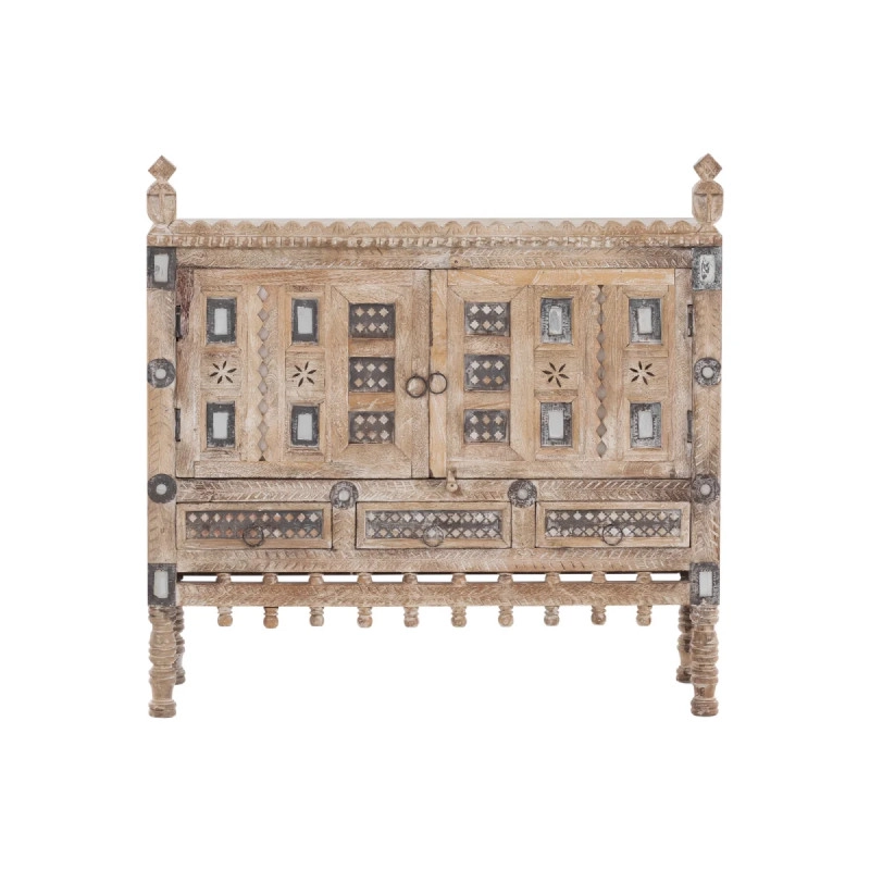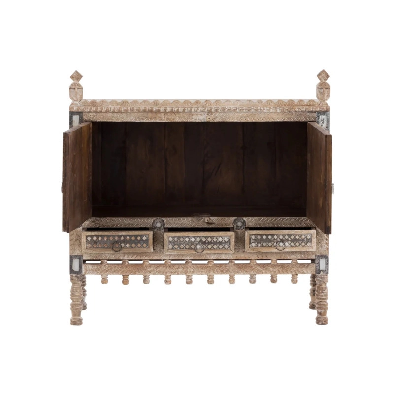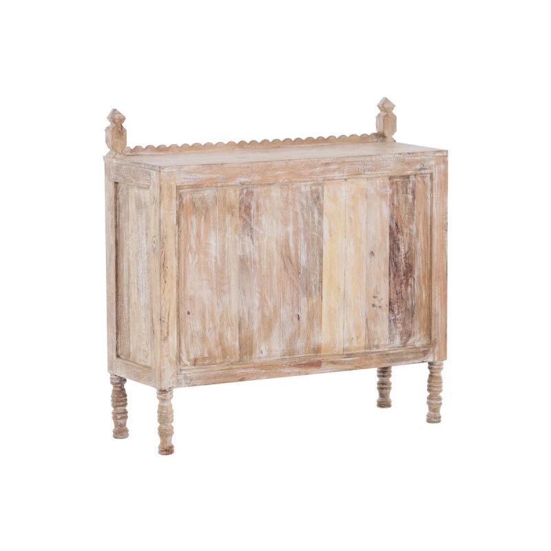 Masivní komoda Damchaya je ideálním kouskem nábytku pro všechny, kteří hledají spojení elegance, funkčnosti a kvality. Vyrobená z mangového dřeva, které je známé pro svou odolnost a jedinečný vzhled, přináší do vašeho obývacího pokoje nejen praktické úložné prostory, ale také přírodní krásu. Její bílá lakovaná povrchová úprava dodává komodě vzdušnost a svěžest, což ji činí skvělým doplňkem jak pro moderní, tak pro tradiční interiéry. S rozměry 96×37×96 cm se skvěle hodí do menších i větších prostorů, ať už ji umístíte vedle pohovky, nebo jako samostatný prvek v rohu místnosti.