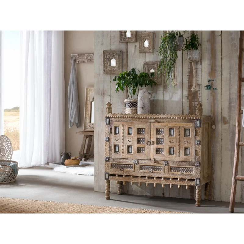 Díky preciznímu zpracování a pečlivému výběru materiálů se komoda stává nejen estetickým, ale i funkčním prvkem vašeho domova. Její tvar a design umožňují snadné začlenění do různých stylů interiéru, kde působí jako praktický úložný prostor pro knihy, dekorace nebo osobní věci. Mangové dřevo, které je ekologicky šetrné a dlouhotrvající, zaručuje, že komoda bude skvěle sloužit po mnoho let. Nechte se inspirovat a proměňte svůj obývací pokoj s touto jedinečnou komodou, která přináší nejen styl, ale i příjemnou atmosféru domova. Prozkoumejte možnosti, které vám komoda Damchaya nabízí, a udělejte krok k dokonale zařízenému interiéru.