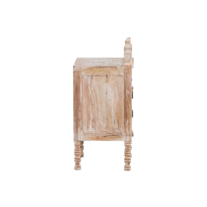 Lakovaný povrch v bílé barvě nejenže dodává komodě moderní vzhled, ale také zvyšuje její odolnost proti opotřebení a usnadňuje údržbu. Bílá barva navíc přináší do interiéru svěžest a vizuálně prostor rozšiřuje. Masivní dřevo z manga je známé svou pevností a dlouhou životností, což z této komody činí investici, která vám bude sloužit řadu let.