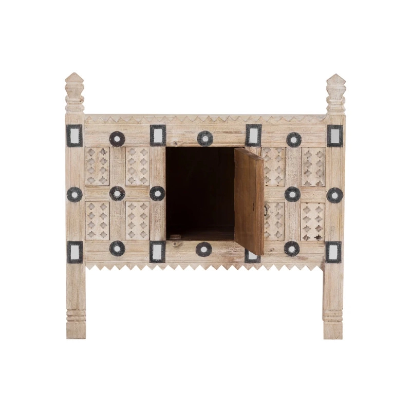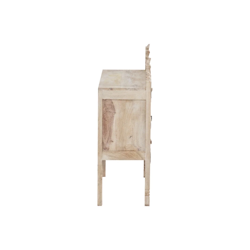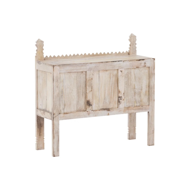 Objevte kouzlo a eleganci s masivní komodou Damchaya, vyrobenou z kvalitního mangového dřeva a ošetřenou lakovaným povrchem v čistě bílé barvě. Tento praktický a stylový kus nábytku s rozměry 91×31×89 cm skvěle doplní každý obývací pokoj a nabídne dostatek úložného prostoru.