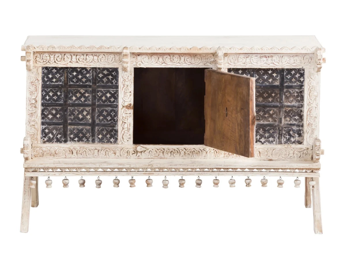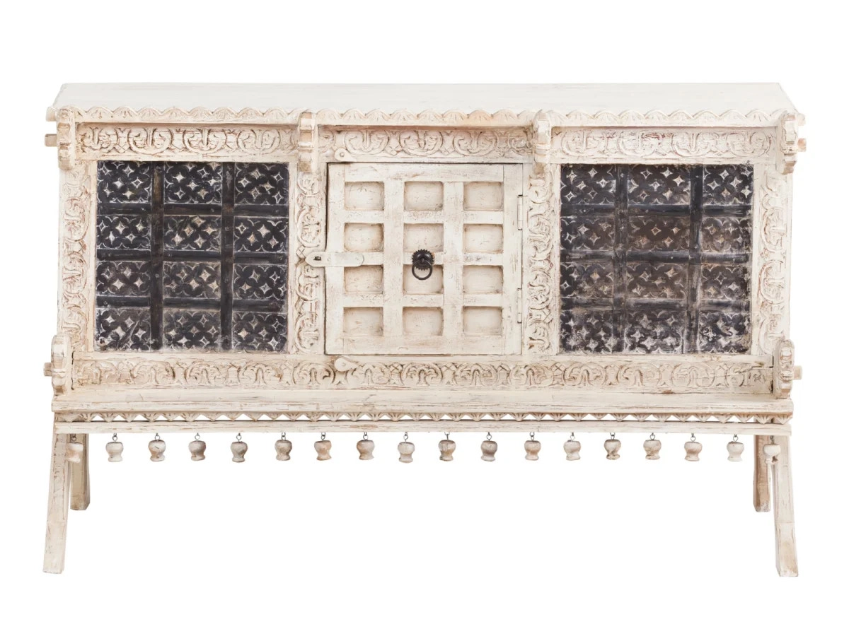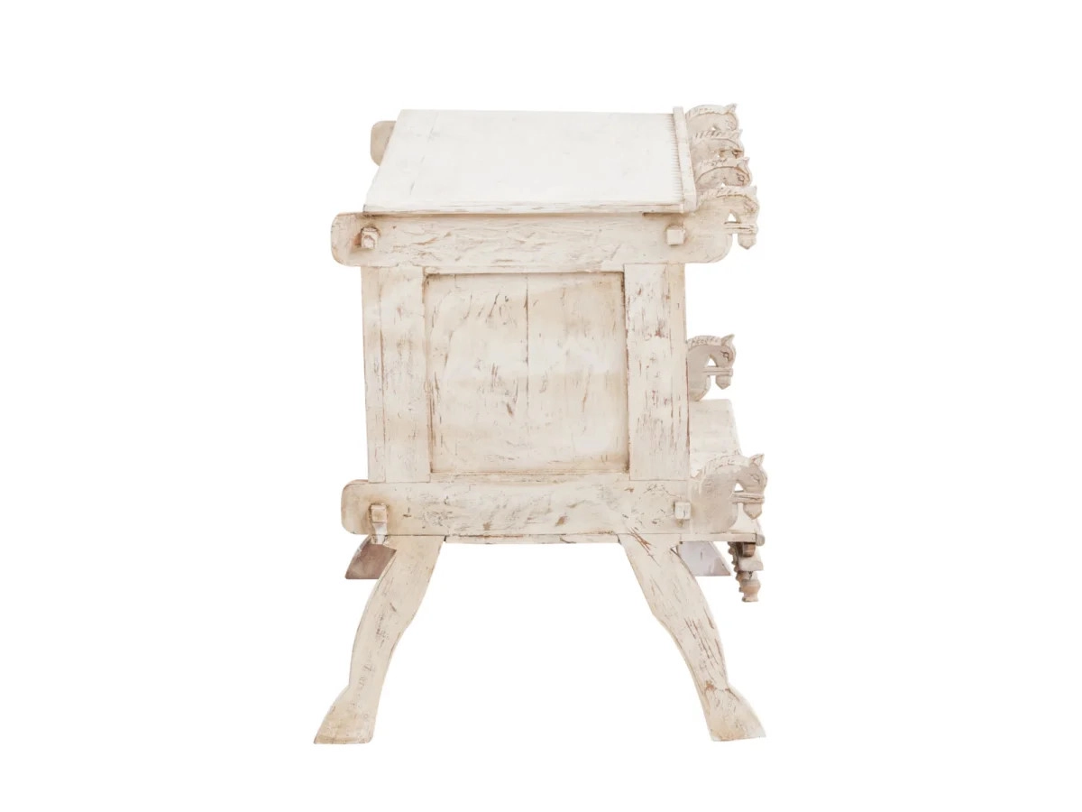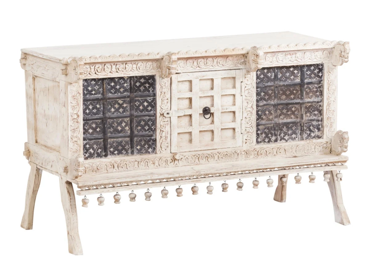 Užijte si spojení přírodní krásy a funkčnosti s komodou Damchaya II, vyrobenou z kvalitního mangového dřeva a ošetřenou lakem pro dlouhodobou odolnost. Tento elegantní kus nábytku v bílé barvě dodá vašemu obývacímu pokoji šmrnc a praktičnost, zatímco rozměry 118 cm × 56 cm × 70 cm nabídnou dostatek úložného prostoru.