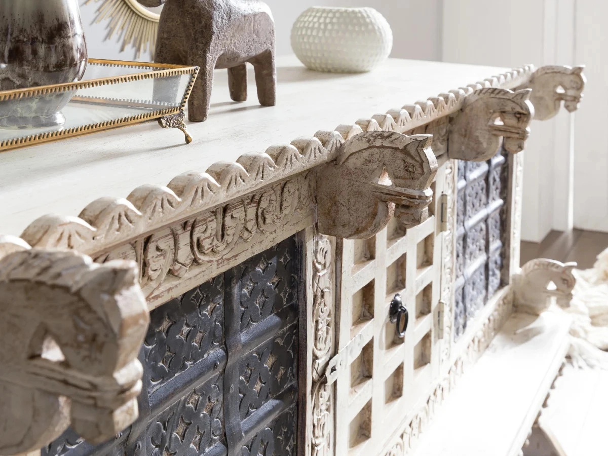 Masivní komoda Damchaya II z mangového dřeva je dokonalým příkladem spojení elegance a funkčnosti. S jejími rozměry 118 cm na šířku, 56 cm na hloubku a 70 cm na výšku se stane středobodem vašeho obývacího pokoje, kde zaujme nejen svým moderním designem, ale také jemně lakovaným povrchem v čisté bílé barvě. Tento kousek nábytku v sobě spojuje přírodní krásu mangového dřeva s minimalistickým stylem, který se skvěle hodí do různých interiérů – od skandinávského po boho. Její prostorné zásuvky a otevřené police nabízejí ideální místo pro uložení knih, dekorací či dalších osobních věcí, takže si můžete vytvořit útulný a organizovaný prostor.