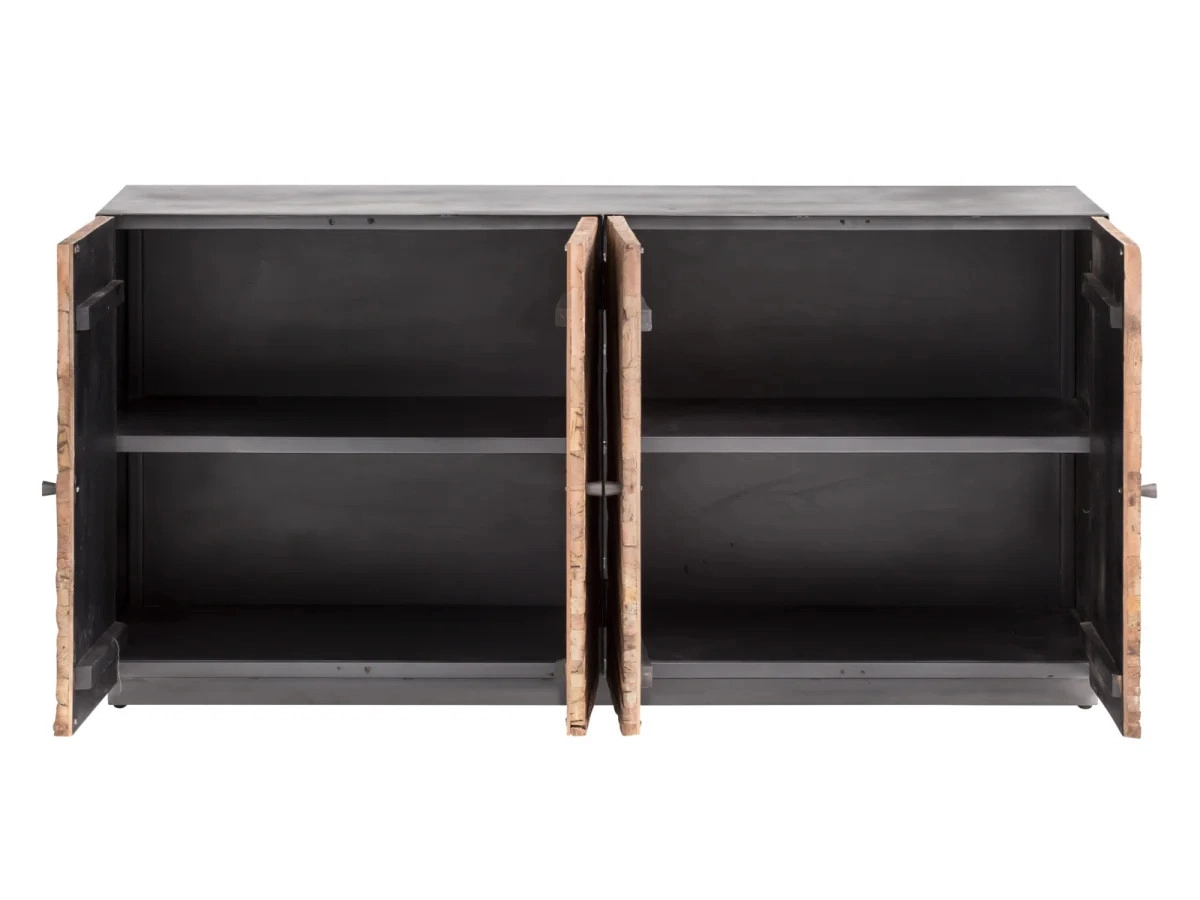 Masivní komoda Derby, vyrobená z recyklovaného dřeva a kovu, spojuje přírodní a šedé tóny s lakovaným povrchem, což jí dodává nejen odolnost, ale i unikátní vzhled. Tento stylový kousek nábytku o rozměrech 160 cm × 50 cm × 80 cm je ideální volbou pro každý obývací pokoj, kde přidá šmrnc i praktičnost.