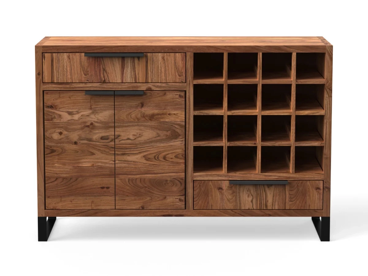 Masivní komoda Sydney, vyrobená z kvalitní akácie a ošetřená lakem pro dlouhou životnost, přináší do vašeho obývacího pokoje eleganci a praktické úložné řešení. Hnědá barva a rozměry 126×45×84 cm této komody dokonale doplní jakýkoliv interiér.
