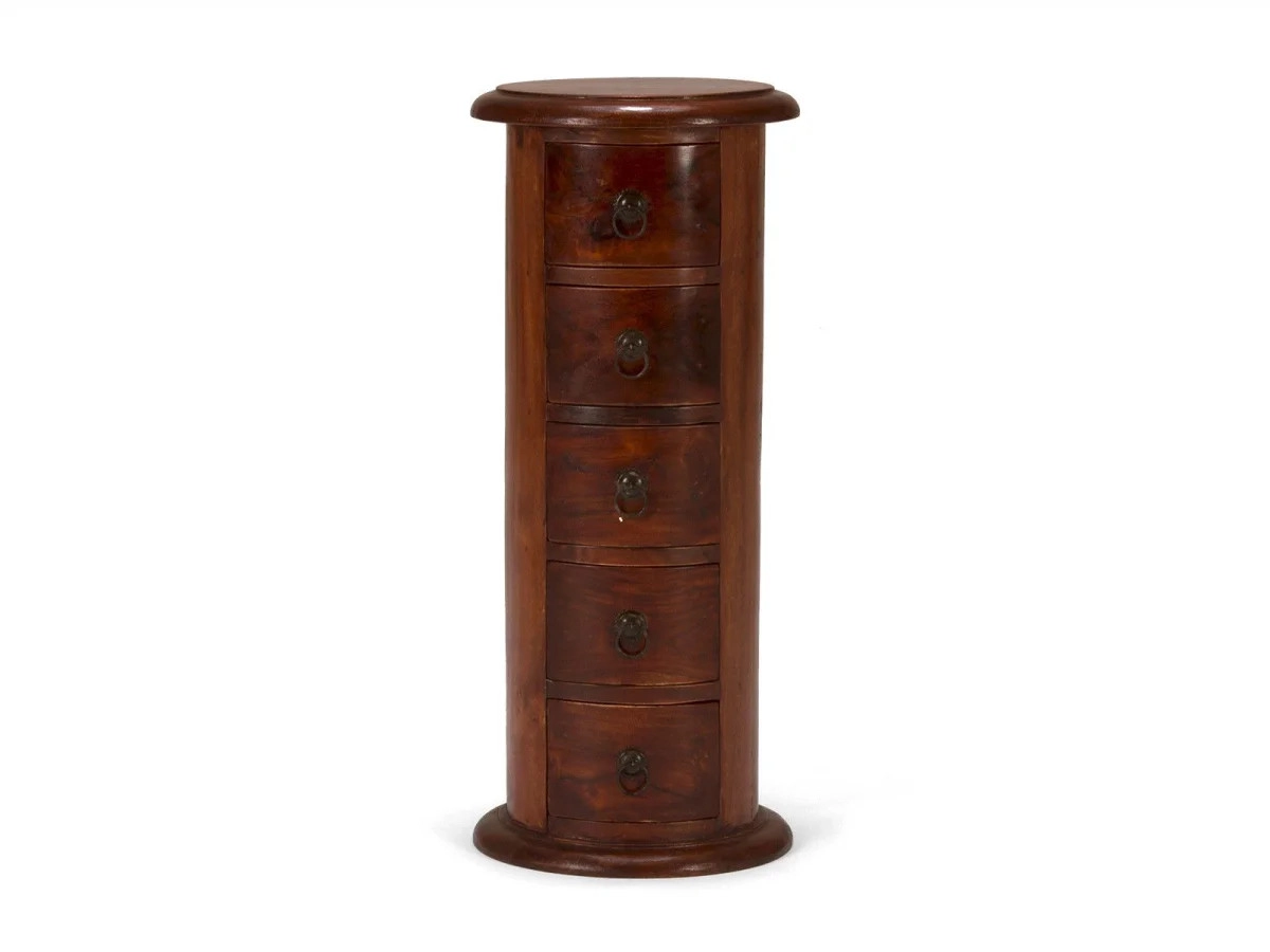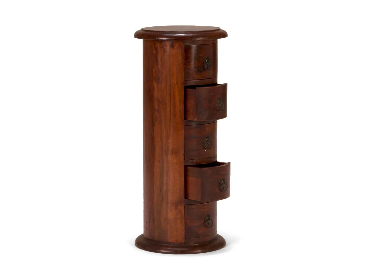Objevte kouzlo přírody s masivní komodou Texas, vyrobenou z kvalitní akáciového dřeva s lakovaným hnědým povrchem. Tento kulatý kousek nábytku, o rozměrech 32 cm×32 cm×76 cm, přinese do vašeho obývacího pokoje teplý a přírodní vzhled, zároveň poskytne praktické úložné řešení s unikátním designem.