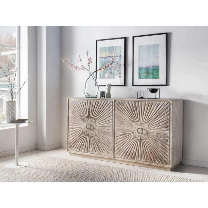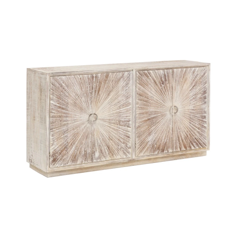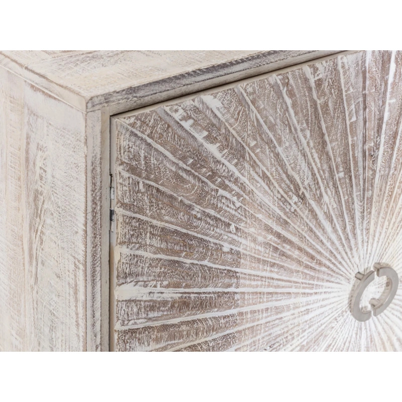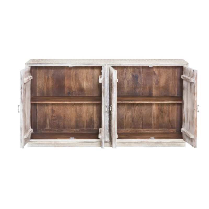 Mangové dřevo, z něhož je komoda vyrobena, je známé svou odolností a trvanlivostí, což z ní činí investici, která vydrží léta. Její rozměry, 163 cm na šířku, 41 cm na hloubku a 87 cm na výšku, nabízejí dostatek prostoru pro ukládání všeho od knih po dekorační předměty. Navíc, díky hlubokým zásuvkám a širokému hornímu povrchu může sloužit nejen jako úložný prostor, ale i jako místo pro vystavení vašich oblíbených fotografií, váz s květinami nebo uměleckých děl.