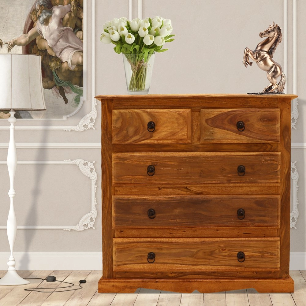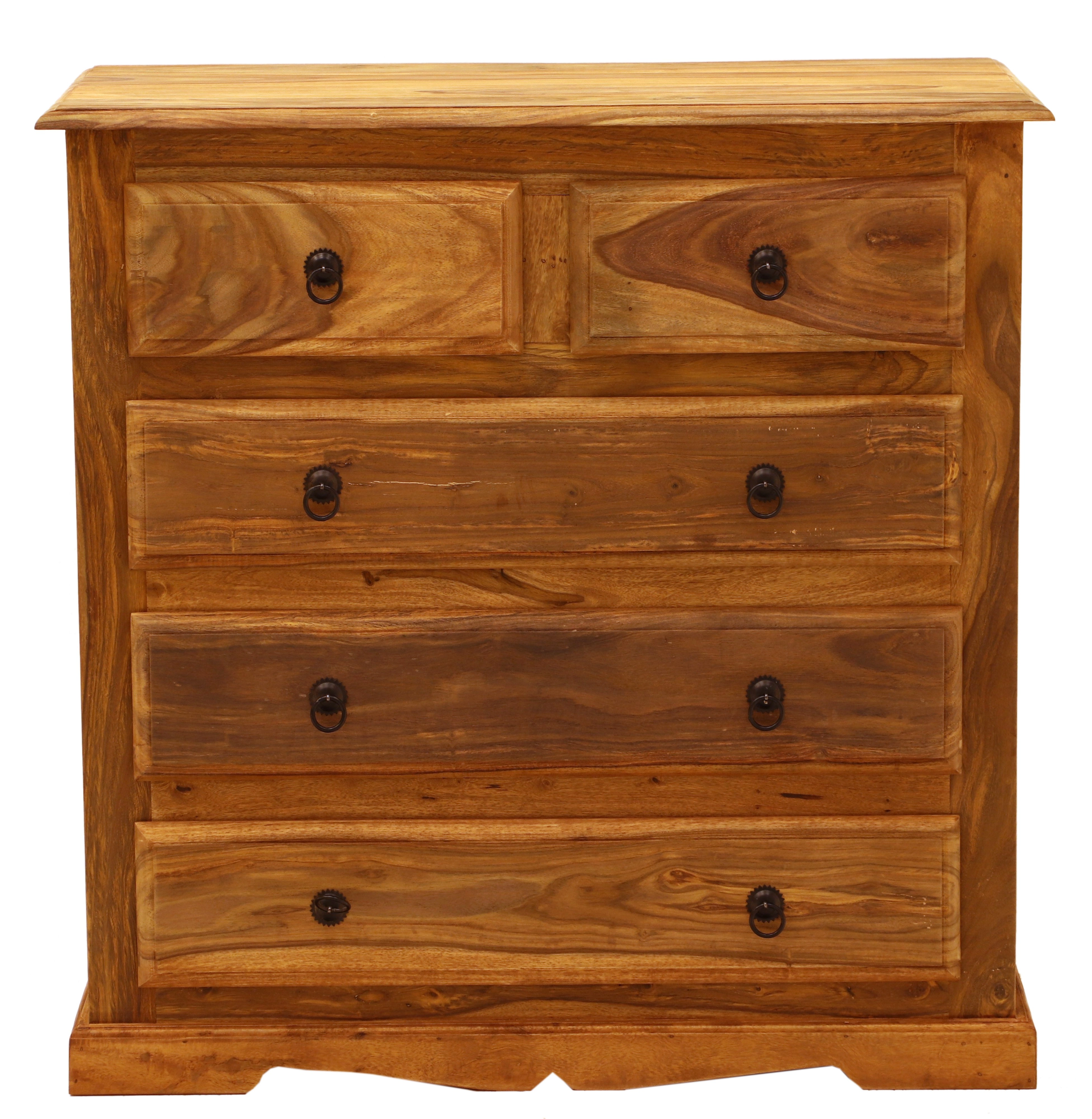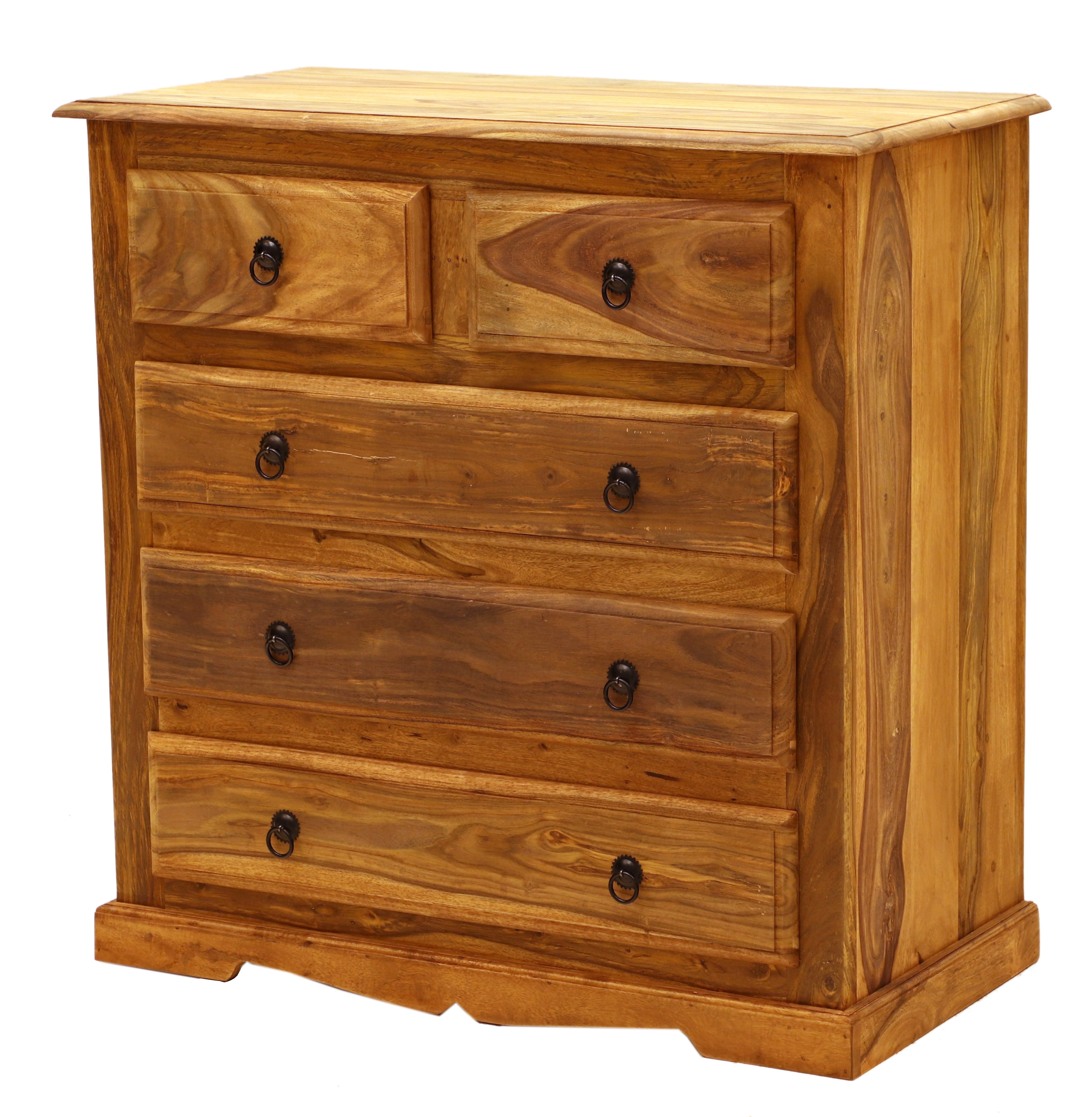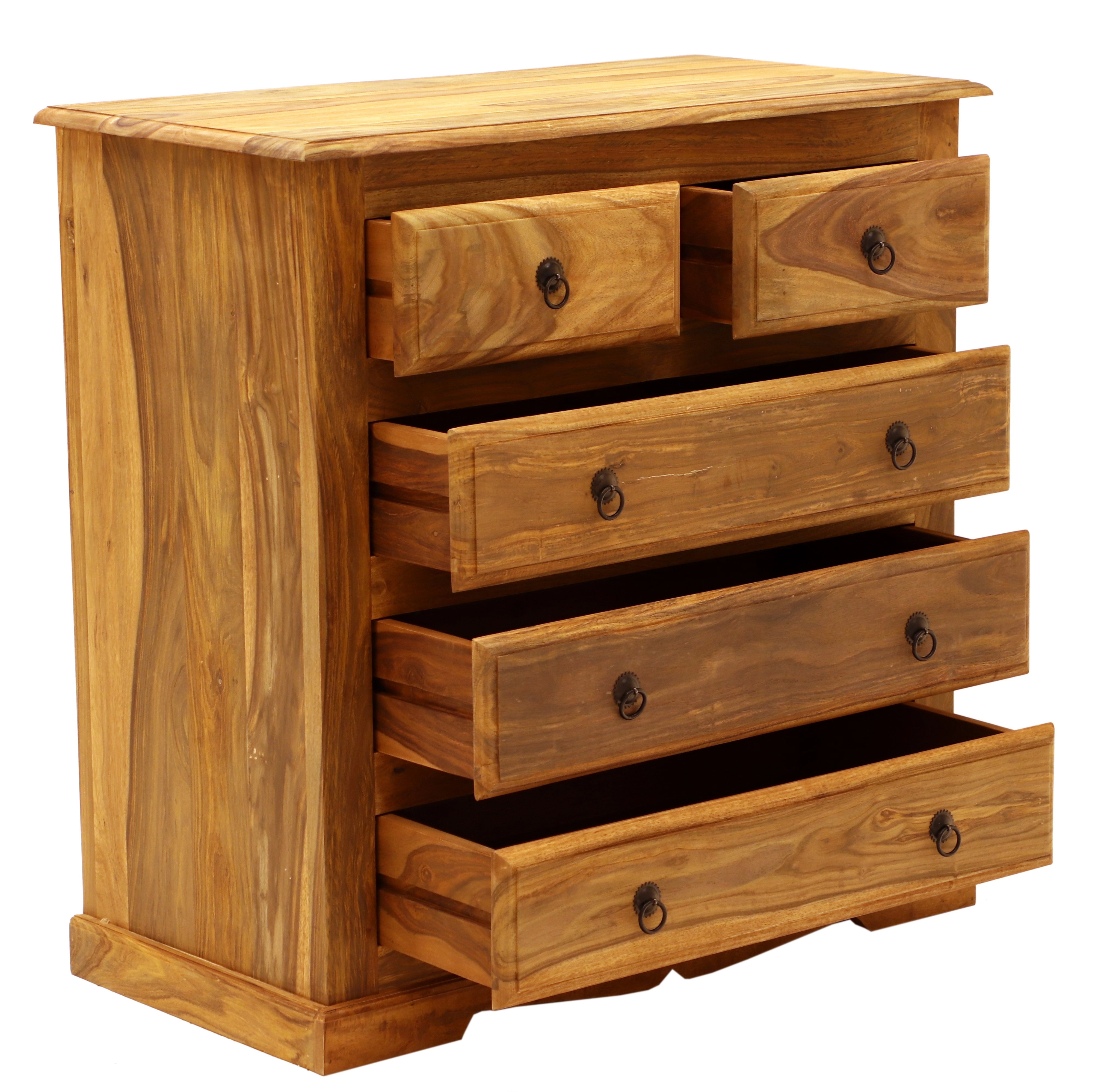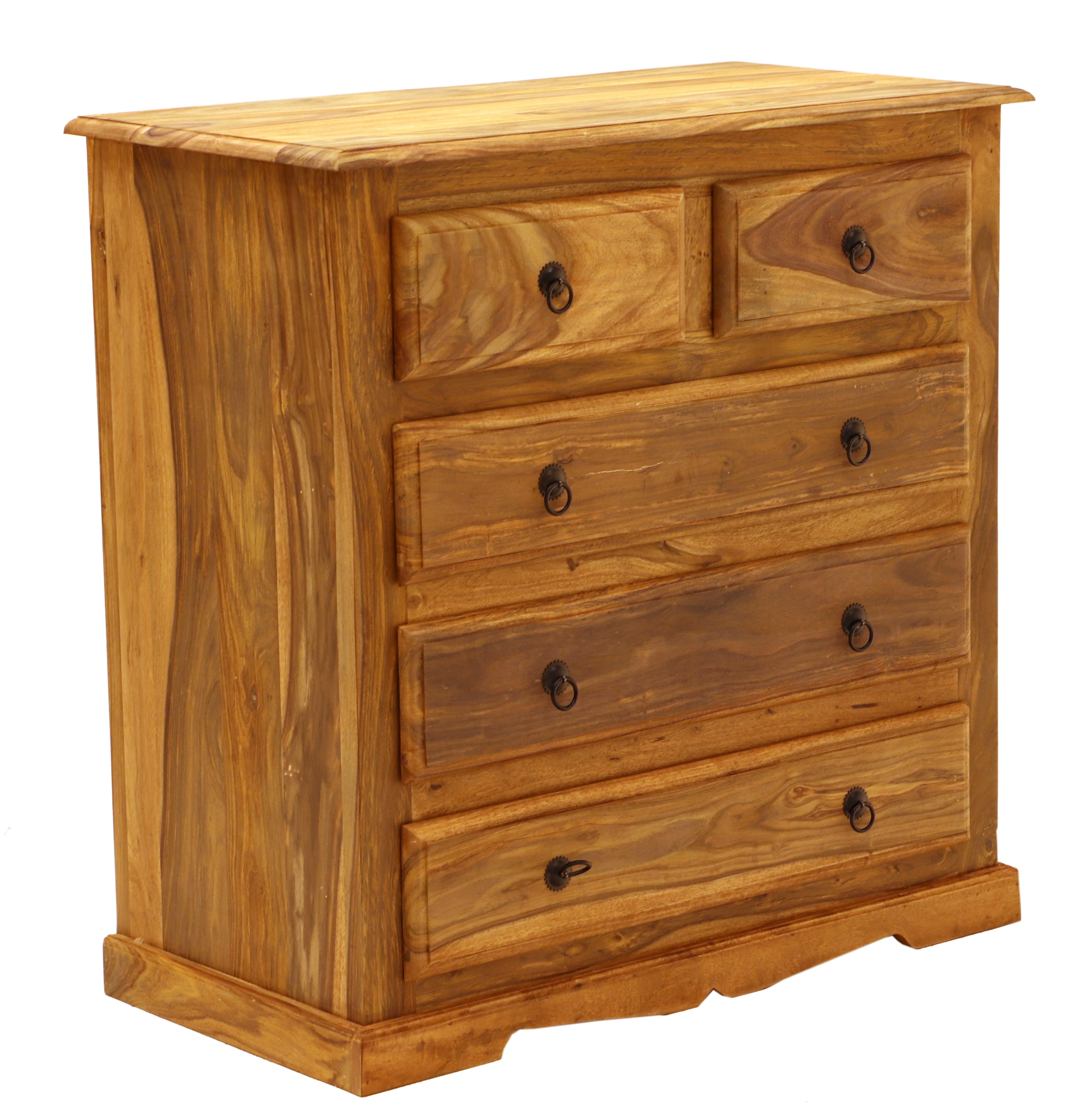 Masiv komoda z dřeva palisandr 90x45x90 je výjimečným kusem nábytku, který kombinuje funkčnost a eleganci. Tento nádherný kus nábytku, pocházející z Indie, je vyroben z kvalitního palisandru, známého svou pevností a odolností. Komoda má pět prostorných zásuvek, které poskytují dostatek úložného prostoru pro všechny vaše potřeby, ať už se jedná o oblečení, doplňky nebo jiné drobnosti. Díky svým rozměrům 90 cm na šířku, 45 cm na hloubku a 90 cm na výšku je ideální volbou do každé předsíně, kde nejen plní praktickou funkci, ale také dodává místnosti nádech exotiky a luxusu. Komody masiv z Indie jsou vyhledávané pro svou jedinečnou kresbu dřeva a přírodní kouzlo, které vnese teplo a charakter do vašeho domova.