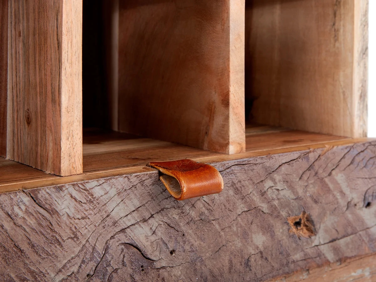 Objevte kouzlo udržitelnosti s naší komodou Oldwood, která je vyrobena z recyklovaného tvrdého dřeva. Tento kus nábytku vyniká svou přírodní barvou a ochrannou lakovanou povrchovou úpravou, a rozměry 80×40×145 cm přináší dostatek úložného prostoru do každého obývacího pokoje.