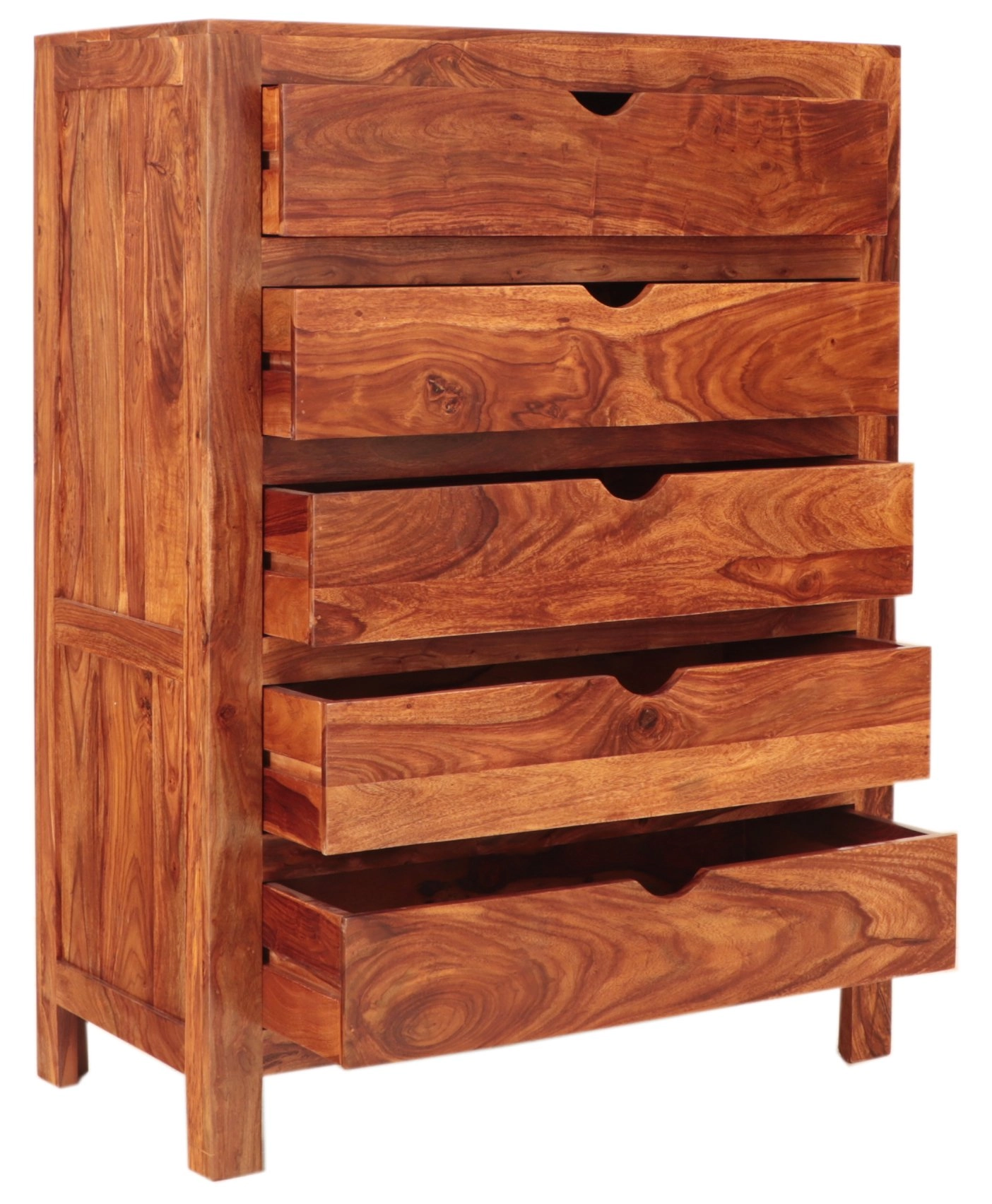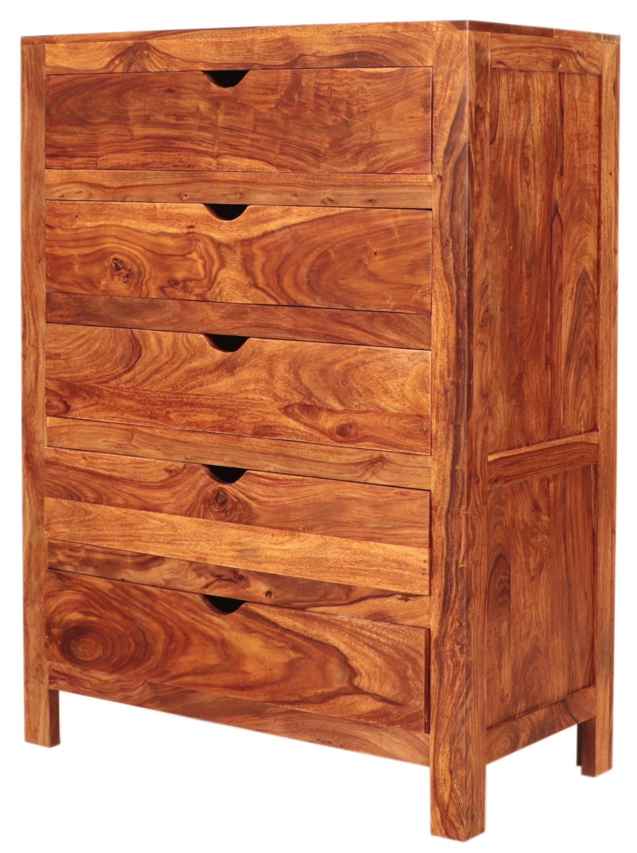 Dřevěná komoda masiv z palisandru 90x120x45 je ideálním doplňkem do vaší ložnice. Tato robustní a stylová komoda je vyrobena z vysoce kvalitního palisandrového dřeva, které je známo svou pevností a jedinečnou kresbou. S rozměry 90 cm na šířku, 45 cm do hloubky a 120 cm na výšku se tato masivní komoda snadno vejde i do menších prostor, zároveň však poskytuje dostatek úložného prostoru díky pěti prostorným šuplíkům.