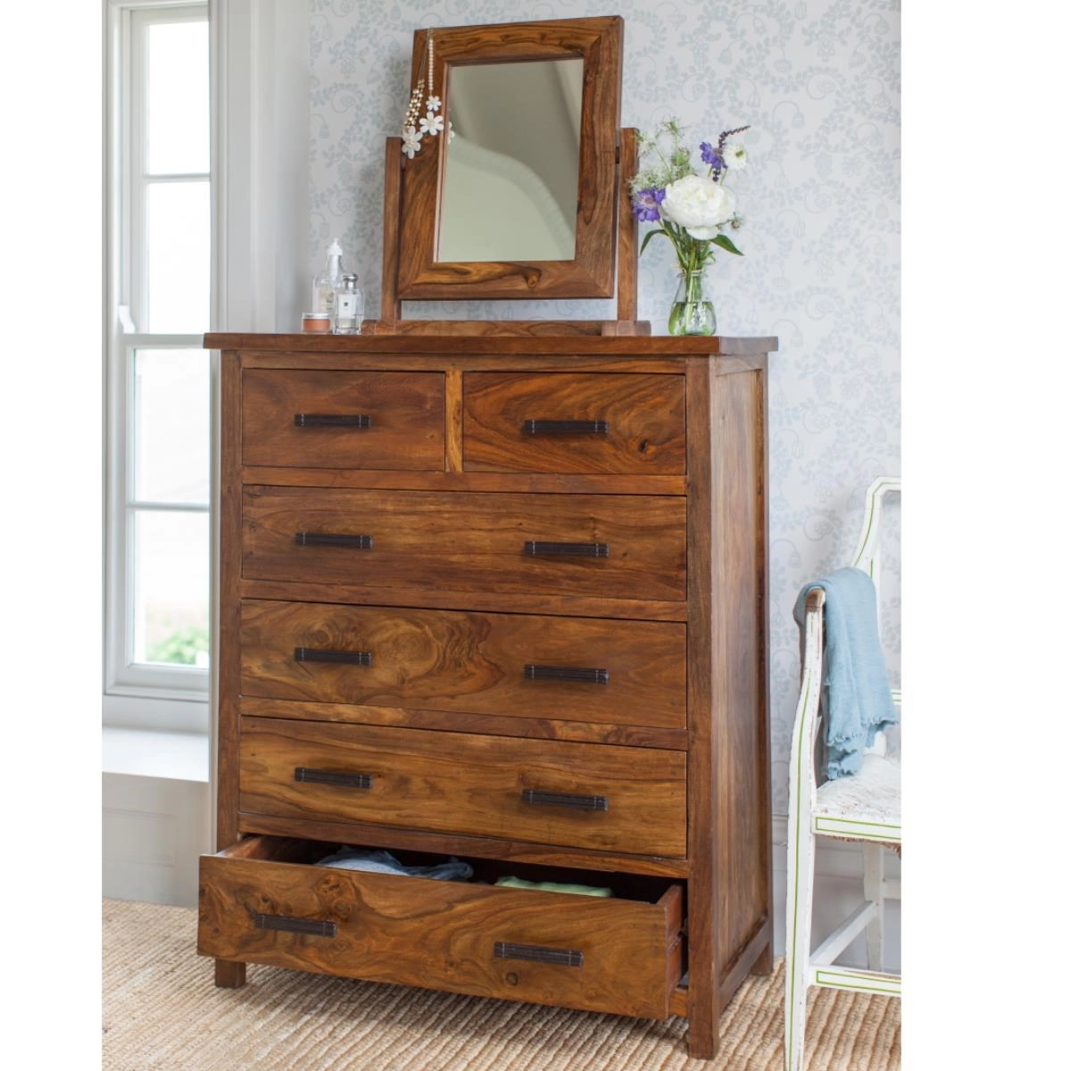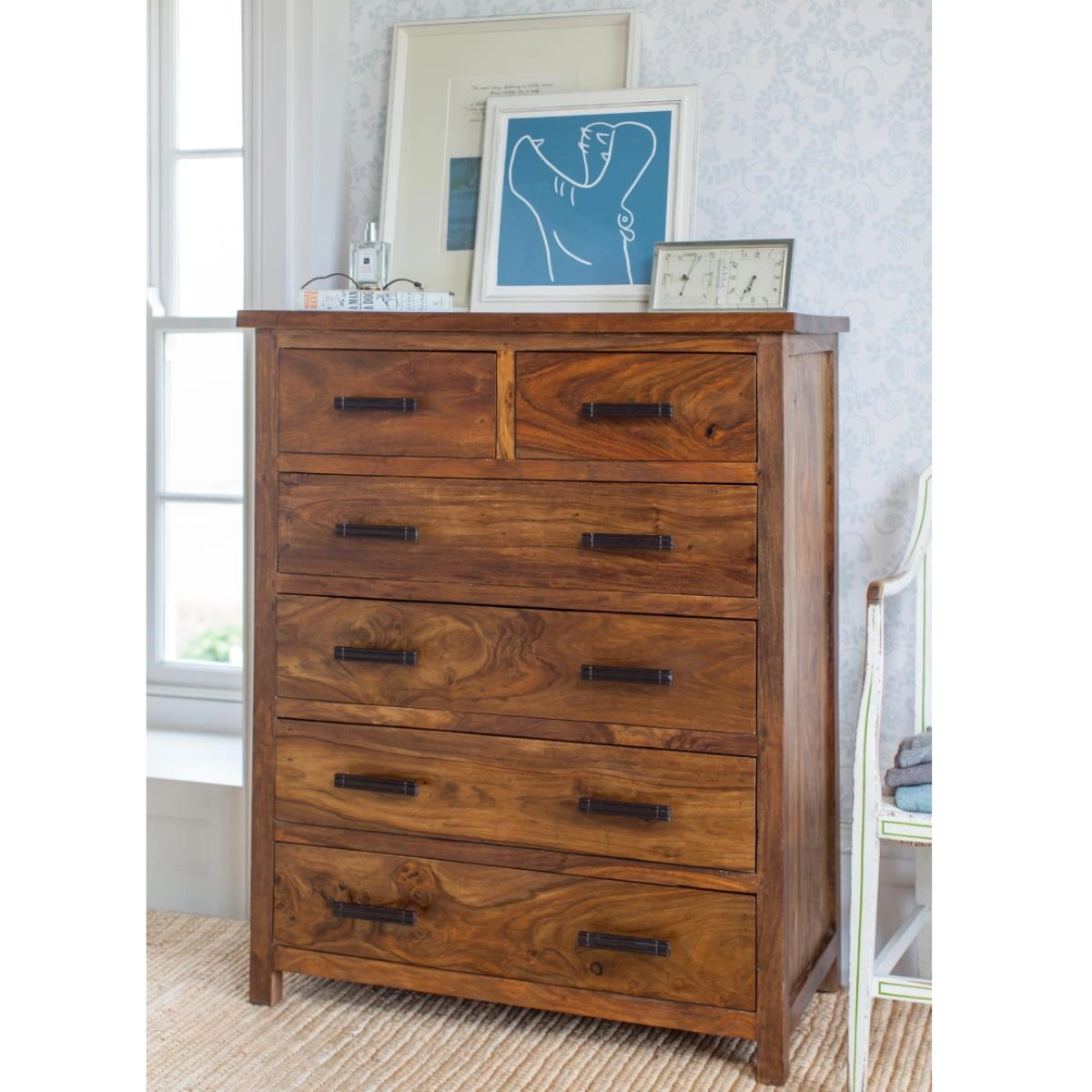 Masivní komoda z dřeva palisandr 90x45x120 je dokonalým příkladem spojení přírodního kouzla s praktickým designem. Tato komoda, vyrobená z kvalitního indického palisandru, je ideální volbou pro ty, kteří vyhledávají nábytek z masivu do své ložnice. S šířkou 90 cm, hloubkou 45 cm a výškou 120 cm nabízí dostatek úložného prostoru, díky kterému můžete mít všechny své věci pečlivě uspořádané. Šest zásuvek poskytuje maximální funkčnost a umožňuje snadný přístup k uloženým předmětům.