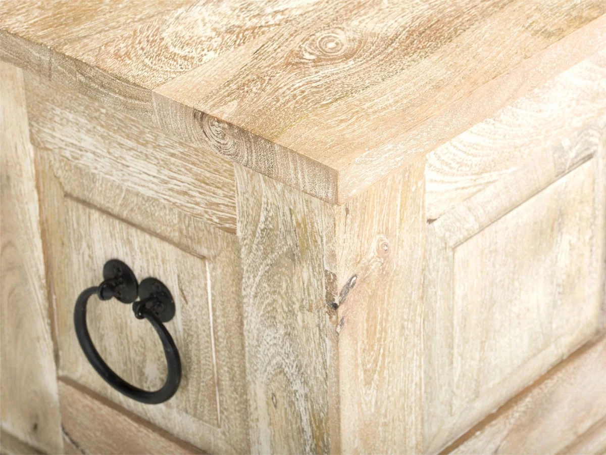 Kvalita zpracování této truhlice je zřejmá již na první pohled. Mangové dřevo, známé svou odolností a jedinečným zrnáním, přináší do vašeho prostoru teplo a přírodní krásu. Lakovaný povrch nejen chrání dřevo, ale také usnadňuje údržbu, což oceníte především v rušných domácnostech. Tvar truhlice je navržen s ohledem na maximální funkčnost a estetiku, což ji činí ideální volbou pro moderní bydlení. Nechte svůj obývací pokoj prozářit touto unikátní truhlicí a přidejte do svého domova kousek přírody, který vám bude sloužit po dlouhá léta. Objednejte si masivní truhlici Patina ještě dnes a užijte si spojení krásy a funkčnosti!