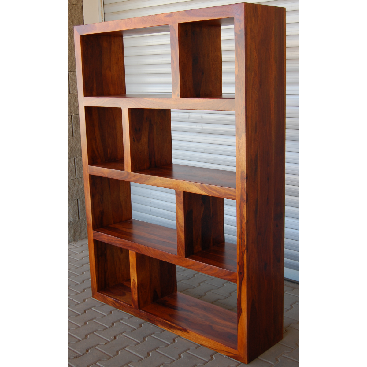 Wir bieten das Regal in den Maßen 150x30x180 an, sodass es praktisch in jeden Haushalt passt - wir können es jedoch auch in individuellen Abmessungen gemäß Ihren Vorlieben herstellen. Dieses Produkt wird in Indien von Hand in bis zu 8 Nuancen hochwertigem Massivholz aus Palisander und Mango gefertigt. Dieses Holz gehört zu den besten und härtesten Arten der Welt! Wir bieten unseren Kunden die Möglichkeit, alle Produkte individuell nach Ihren Anforderungen anzupassen - in diesem Fall kontaktieren Sie uns bitte über den Bereich Kontakt. Qualität, Flexibilität und ein großartiger Preis!