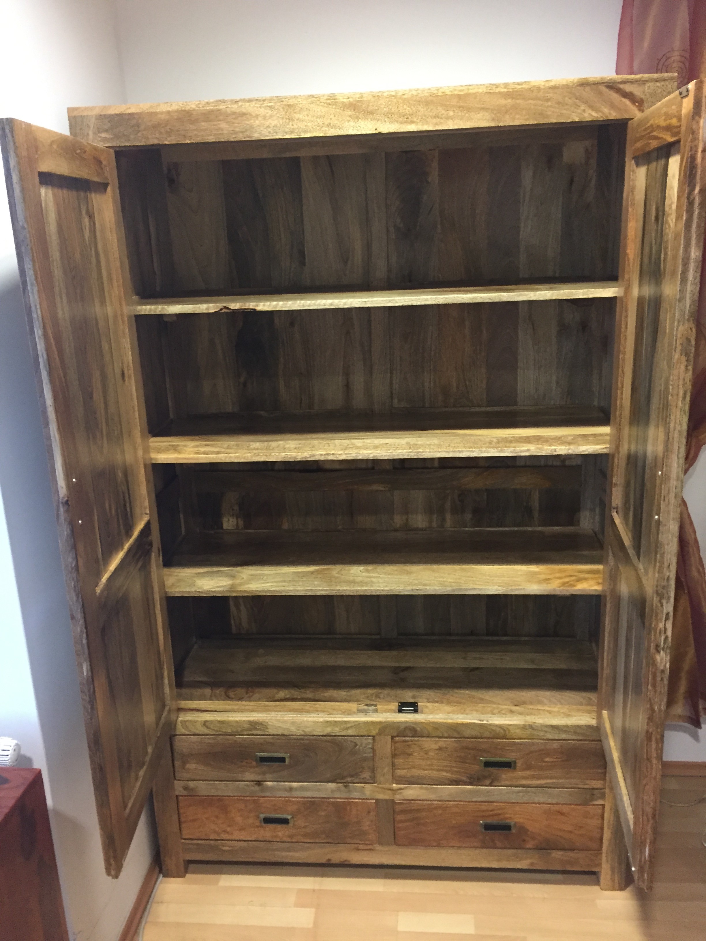 Massive Garderobe, die Ihnen wirklich umfangreichen Stauraum bietet. Sie bietet praktische Lösungen für jeden Haushalt. Die Kombination aus hochwertiger Verarbeitung und ansprechendem Design ist ein gefragtes Merkmal unserer Produkte. Das Holz gehört zu den hochwertigsten der Welt, und der gesamte Schrank ist somit erstaunlich robust und stabil. Sie strahlt einen wirklich einzigartigen und originellen Geist aus, den Sie lieben werden. Der konkurrenzlose Preis ist ein willkommener Bonus für Sie!