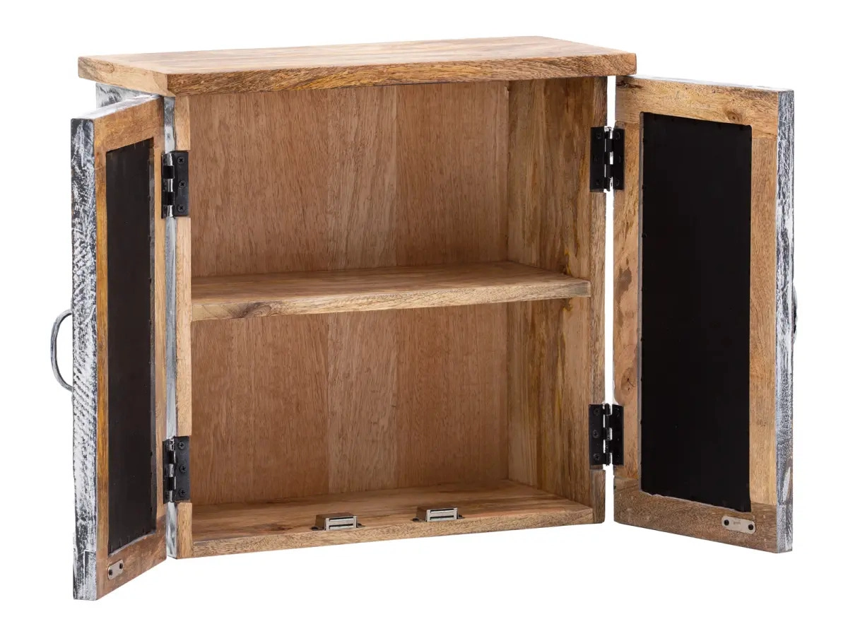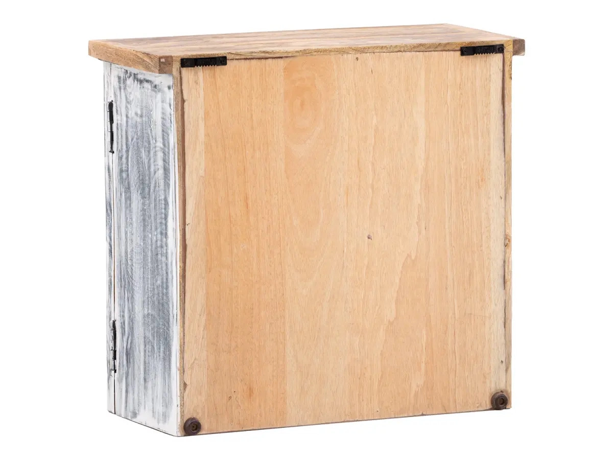 Mangoholz, aus dem der Schrank gefertigt ist, ist bekannt für seine Haltbarkeit und natürliche Schönheit, die jedem Stück einen einzigartigen Charakter verleiht. Der Schrank steht auf einem soliden Sockel und besitzt eine glatte Oberfläche, die nicht nur schön, sondern auch pflegeleicht ist. Die natürlichen und organischen Formen schaffen eine harmonische Atmosphäre, während die graue Farbe sich leicht mit verschiedenen Einrichtungsstilen kombinieren lässt – von minimalistischem Design bis hin zu rustikalem Flair. Mit den Maßen 80 × 60 × 30 cm passt dieser Schrank problemlos in jedes Badezimmer oder geräumige Zimmer und bietet den benötigten Stauraum für all Ihre Kosmetik- und Hygieneartikel.