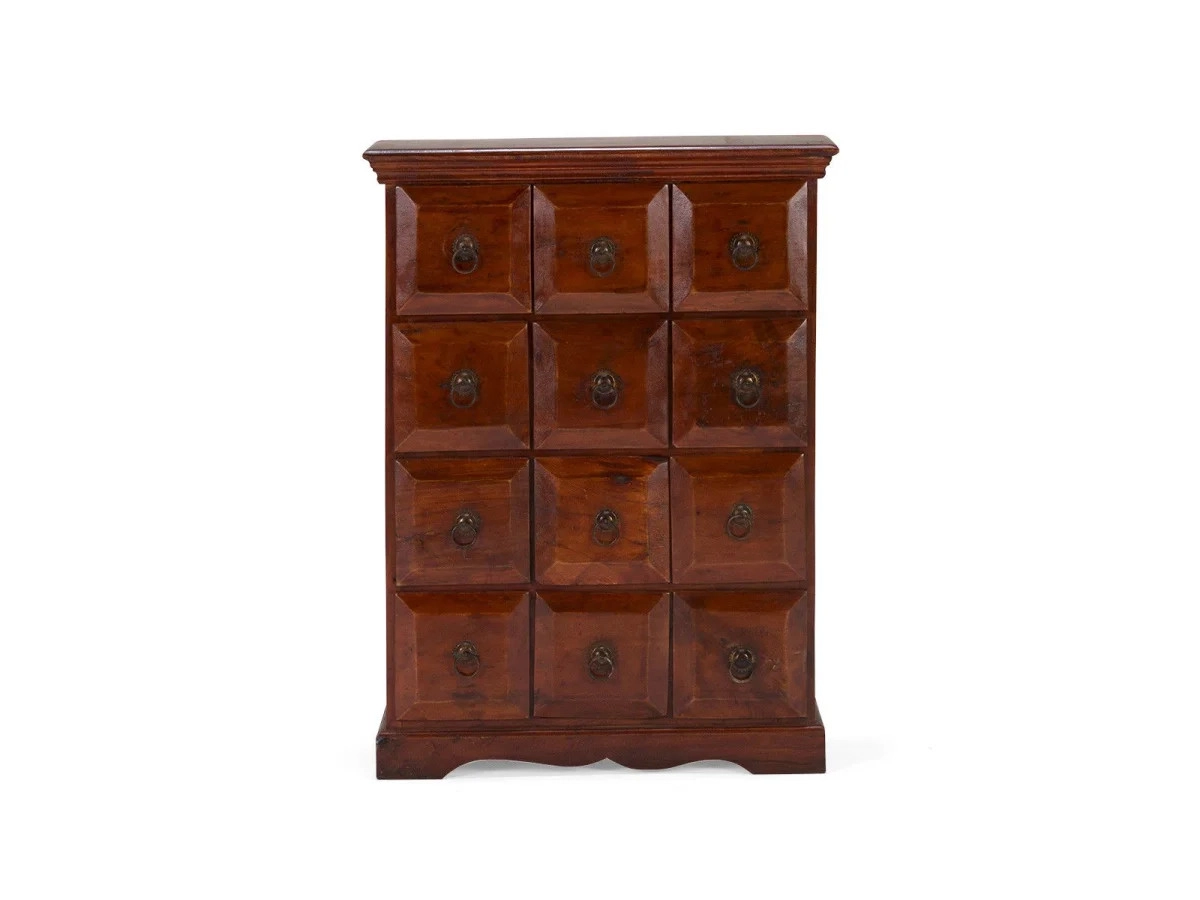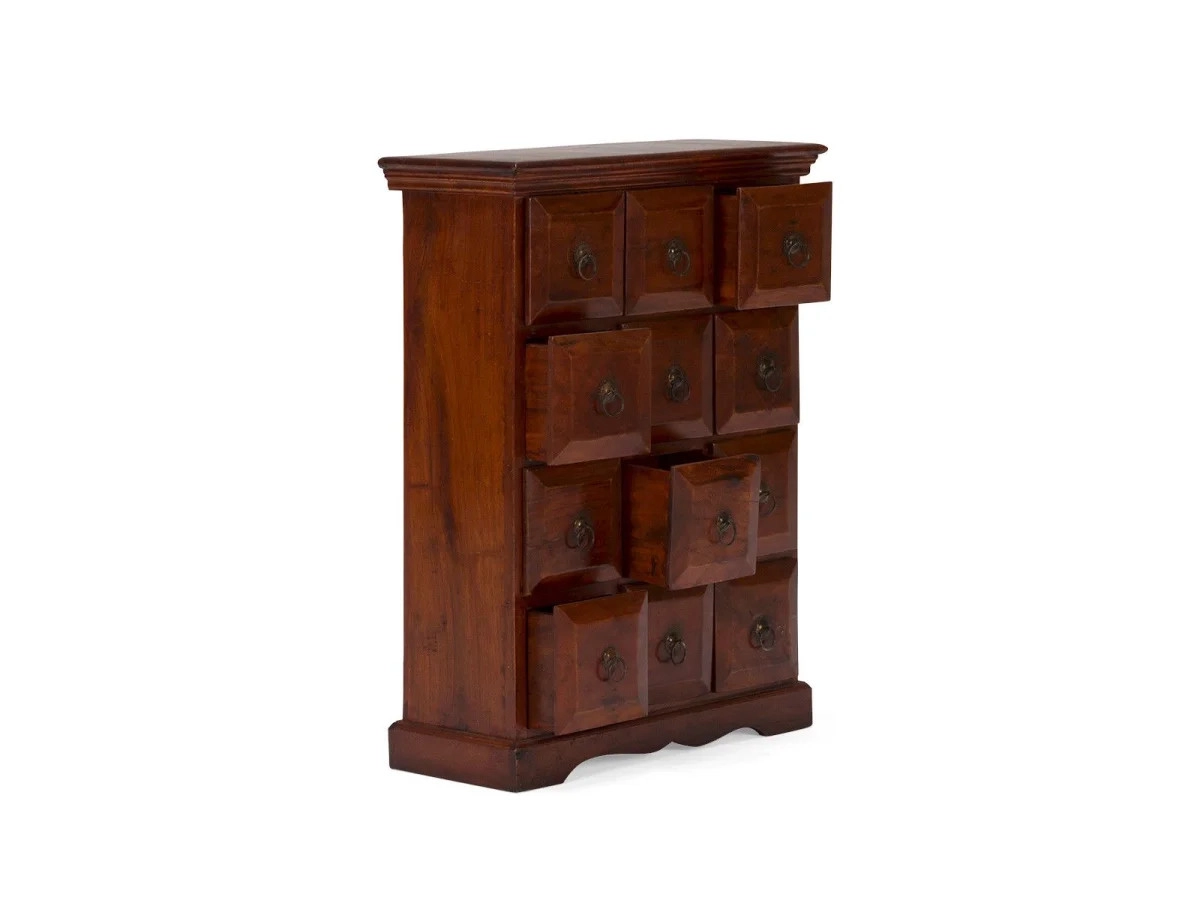 Objemte kouzlo tradičního designu s komodou lékárníka Texas, vyrobenou z kvalitního lakovaného dřeva akácie. Tento kus nábytku v hnědé barvě, o rozměrech 58 cm x 25 cm x 82 cm, přinese do vašeho obývacího pokoje hřejivý pocit domova a útulnosti, zároveň poskytne dostatek úložného prostoru pro vaše potřeby.