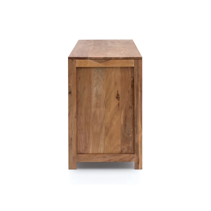 Skříňka Auckland je vyrobena z kvalitního akáciového dřeva, známého pro svou odolnost a trvanlivost. Hnědá barva dřeva s lakovaným povrchem nejen že dodává skříňce luxusní vzhled, ale také zajišťuje snadnou údržbu a odolnost proti vlhkosti a poškrábání. Rozměry 140 cm × 50 cm × 76 cm nabízí dostatek prostoru pro uložení všech vašich koupelnových doplňků a hygienických potřeb bez nutnosti mít výřez pod umyvadlo. Čisté linie a moderní design skříňky Auckland doplní jakýkoliv interiér, od minimalistického po rustikální, a stane se tak středobodem vaší koupelny.