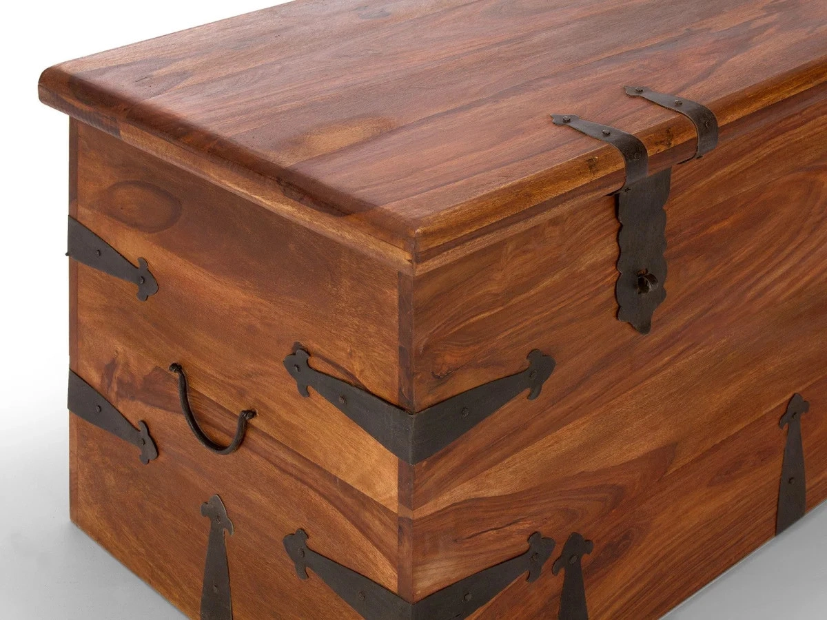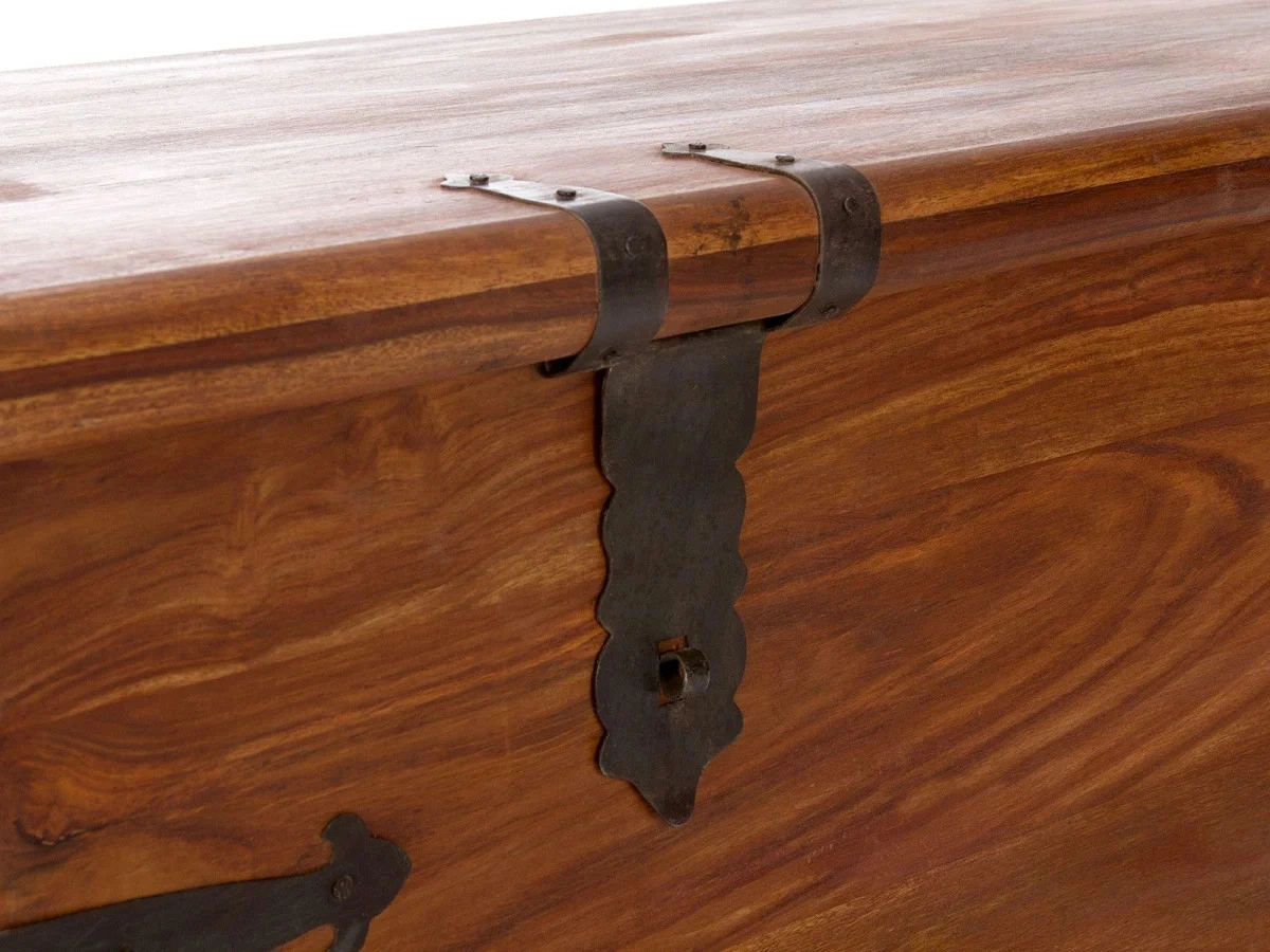 Objevte kouzlo a funkčnost masivní truhlice Merlin I, která je vyrobena z kvalitního palisandru a ošetřena lakem pro dlouhotrvající ochranu a lesk. Tato elegantní hnědá truhlice o rozměrech 94×48×50 cm přináší do vašeho obývacího pokoje jak praktické úložné řešení, tak stylový designový prvek.