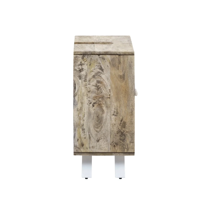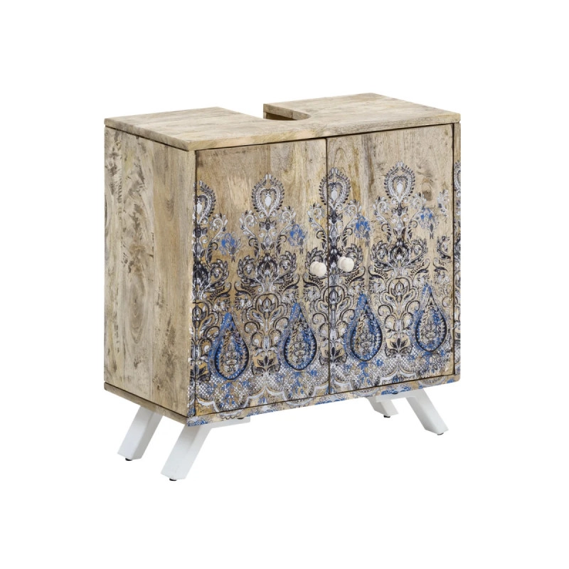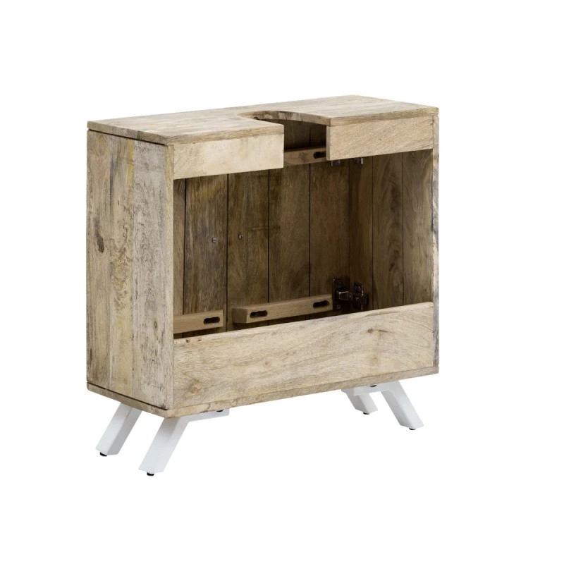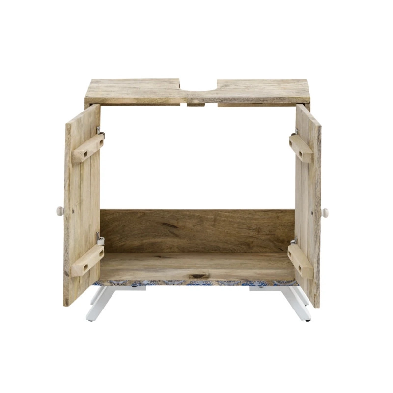 Skříňka pod dřez Alcudia z masivního mangového dřeva dodá vaší koupelně dotek přírodní elegance. Její lakovaný povrch v přírodní barvě vynikne v každém interiéru, a s rozměry 60×30×60 cm poskytne dostatek úložného prostoru pro vaše koupelnové potřeby.