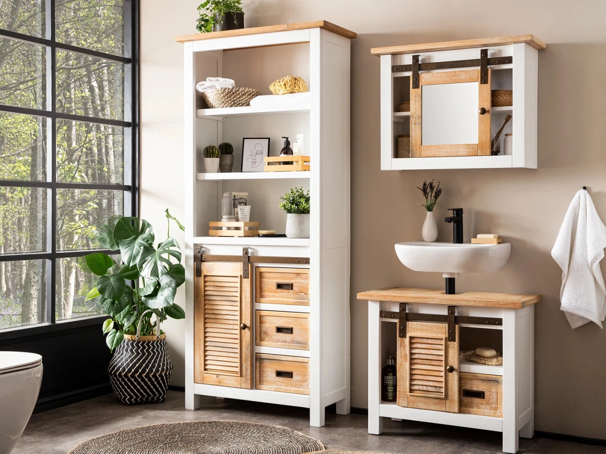 Kromě estetického dojmu se Capera pyšní také vysokou kvalitou zpracování. Pevná konstrukce z borovice zajišťuje odolnost a dlouhou životnost, zatímco MDF přispívá k snadné údržbě a odolnosti vůči vlhkosti, což je v koupelnovém prostředí zásadní. Tato skříňka vám umožní uspořádat si prostor a přitom nepřijít o styl. Nechejte se inspirovat a doplňte svou koupelnu o tuto elegantní skříňku, která je nejen praktická, ale i designovým prvkem, jenž podtrhne vaši osobnost. Objednejte si ji nyní a přiveďte do své koupelny nový nádech elegance!
