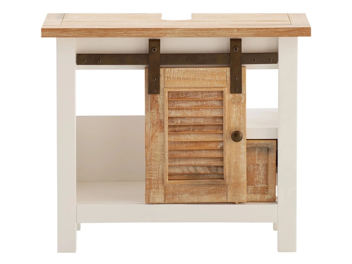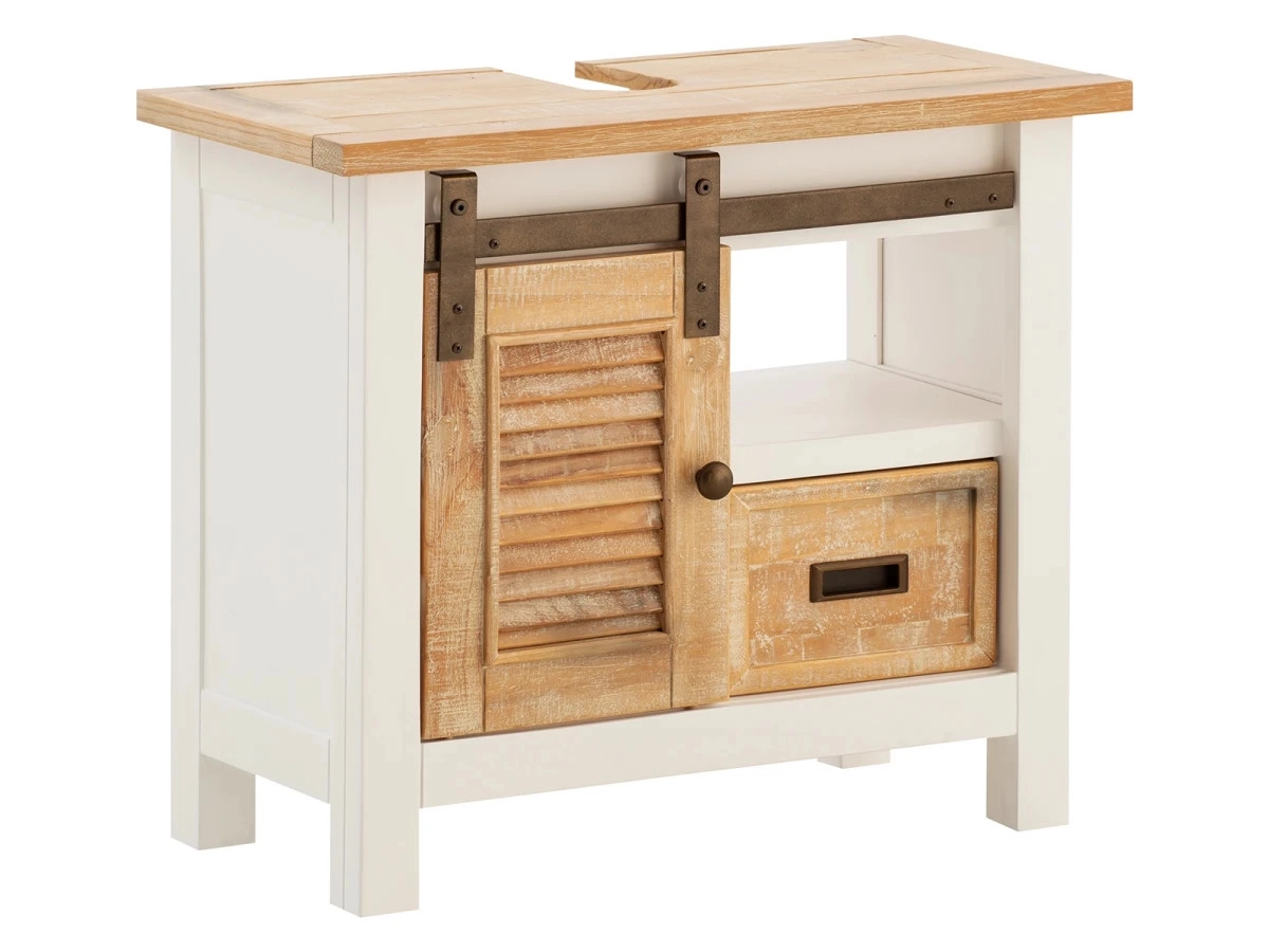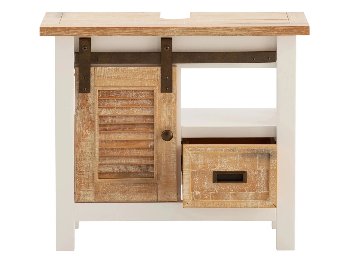 Masivní spodní skříňka pod dřez Capera je dokonalým spojencem pro vaši koupelnu, která si zaslouží nejen funkčnost, ale i stylový vzhled. Vyrobená z kvalitní borovice a MDF, tato skříňka přináší harmonii přírodních materiálů a moderního designu. Její lakovaný povrch v kombinaci s bílou a hnědou barvou dodává prostoru svěží a vzdušný pocit, zatímco elegantní linie a tvar skříňky se snadno začlení do jakéhokoliv interiéru. S rozměry 70 cm x 35 cm x 60 cm nabízí dostatek úložného prostoru pro všechny vaše koupelnové potřeby, ať už se jedná o kosmetiku, čisticí prostředky nebo ručníky.