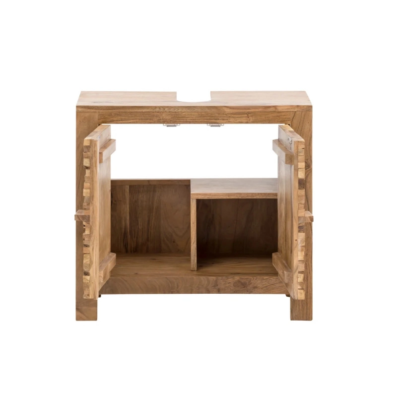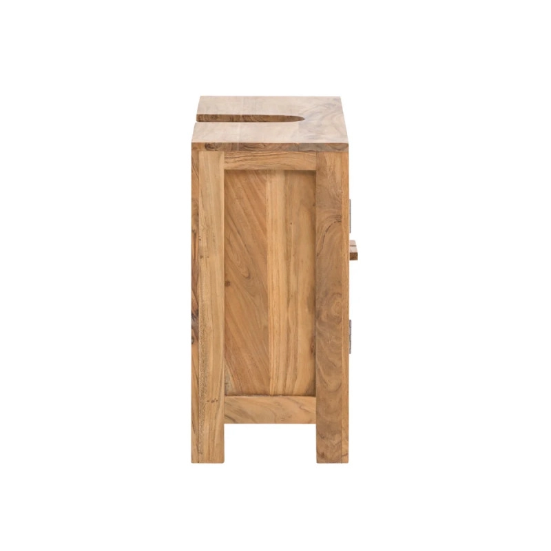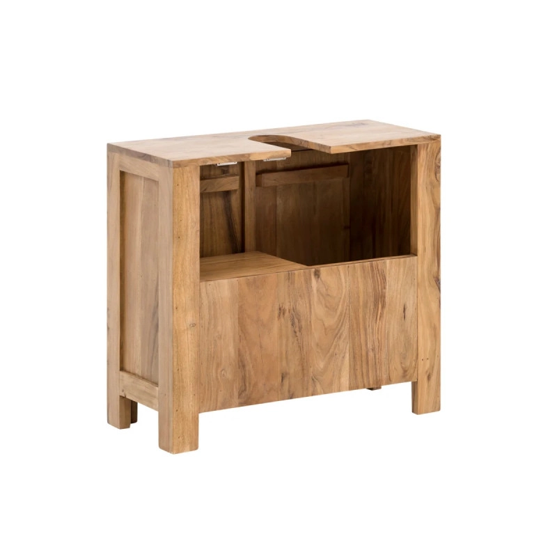 Objemte přírodní krásu a praktičnost s masivní spodní dřezovou skříňkou Matay z akácie. Tento kousek, s rozměry 67 cm × 30 cm × 61 cm, je lakovaný pro dlouhodobou ochranu a přirozenou barvu, která dodá vaší koupelně teplý a příjemný vzhled.