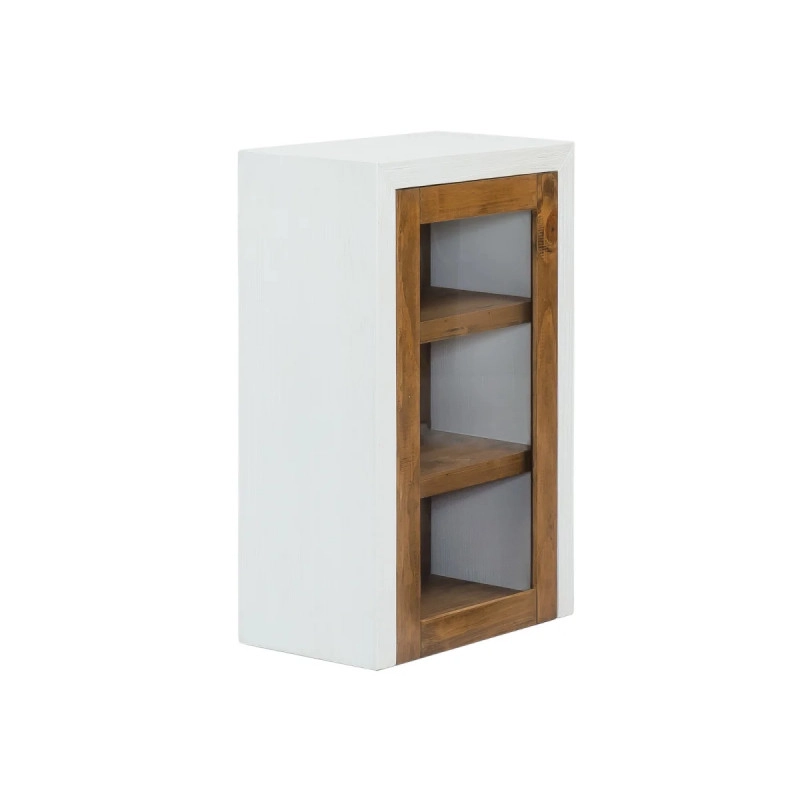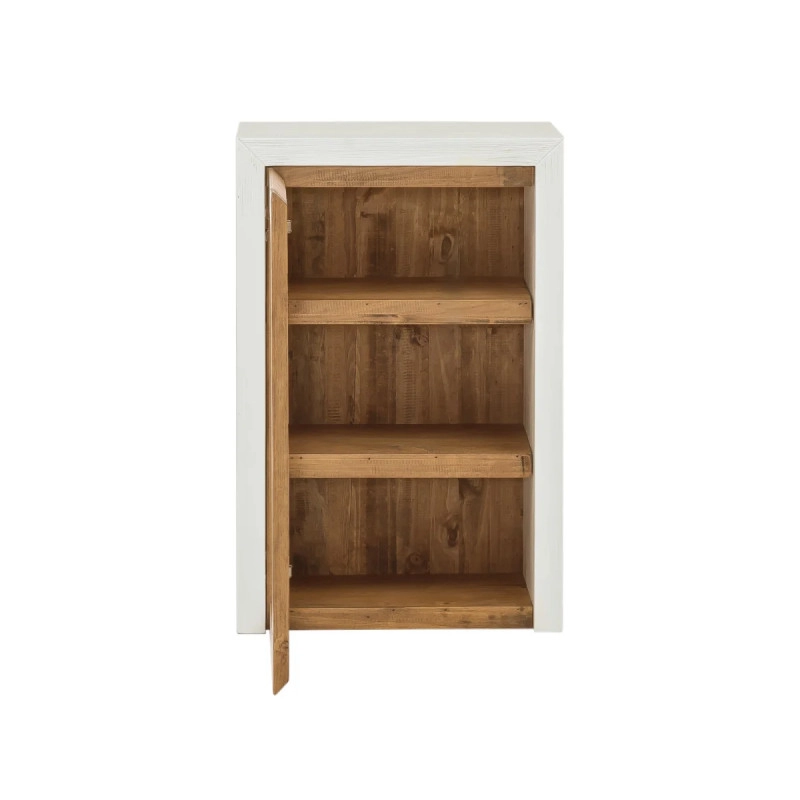 Objevte kouzlo funkčnosti a elegance s masivní koupelnovou nástěnnou skříňkou Burnham, která přináší do vaší koupelny nejen praktické řešení pro uskladnění, ale i výrazný designový prvek. Vyrobená z recyklované borovice a MDF, tato skříňka spojuje ekologické myšlení s moderním stylem. Její kombinace bílé a hnědé barvy dodává prostoru svěží a útulný nádech, který osvěží jakoukoli koupelnu. S rozměry 45 cm x 25 cm x 70 cm se skvěle hodí i do menších prostor, kde efektivně využije každý centimetr.