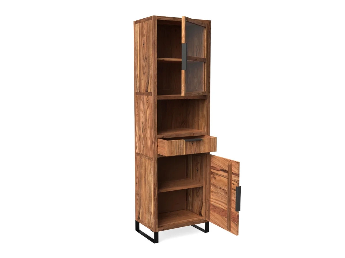 Masivní nástěnná skříň Sydney II, vyrobená z kvalitní akácie a dokončená odolným lakem, přidá eleganci a funkčnost do každého obývacího pokoje. Tento kus nábytku v teplé hnědé barvě nabízí dostatek úložného prostoru a stane se dominantním prvkem vašeho interiéru.