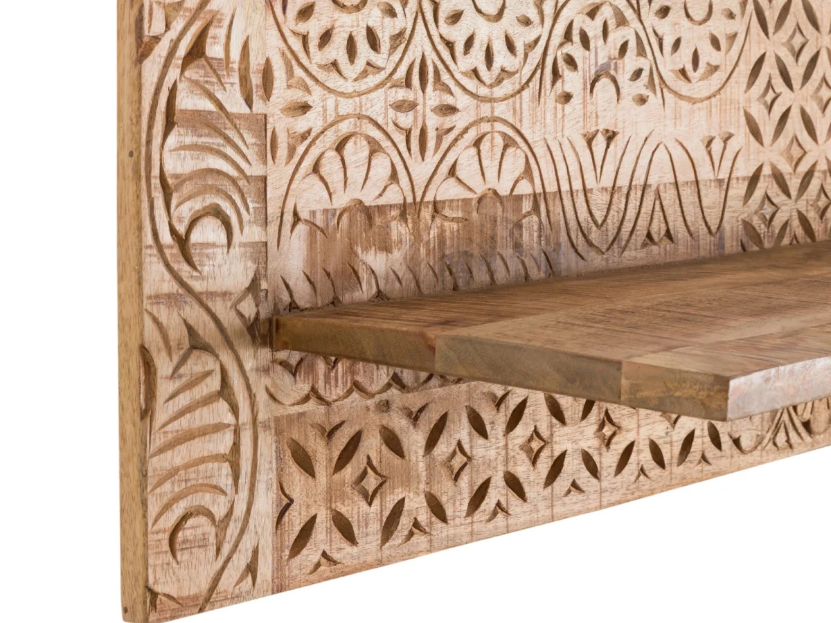 Objevte kouzlo přírodního stylu s nástěnnou policí Mumbai, vyrobenou z kvalitního mangového dřeva. Tento lakovaný kousek v teplé hnědé barvě dodá vašemu obývacímu pokoji nejen praktický úložný prostor, ale i půvabný dekorativní prvek s rozměry 130 cm × 25 cm × 35 cm.