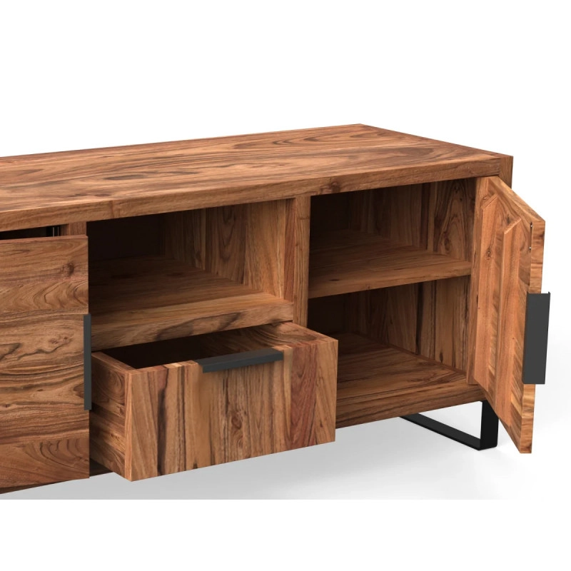Masivní nástěnná jednotka Sydney z akácie přináší do vašeho obývacího pokoje nejen praktičnost, ale i eleganci, která okouzlí na první pohled. Její hnědá lakovaná úprava podtrhuje krásu přírodního dřeva a dodává prostoru teplý a útulný nádech. Akácie, známá pro svou vysokou odolnost a trvanlivost, je ideální volbou pro moderní interiéry, kde se kombinuje funkčnost s estetikou. Skvěle se hodí k minimalistickému stylu, ale také k rustikálnímu či industriálnímu designu, což z ní činí univerzální prvek, který se snadno přizpůsobí vašim představám o dokonalém obývacím pokoji.