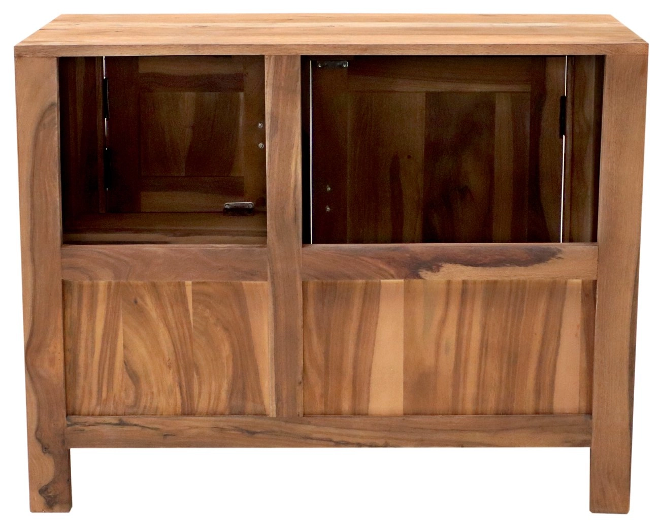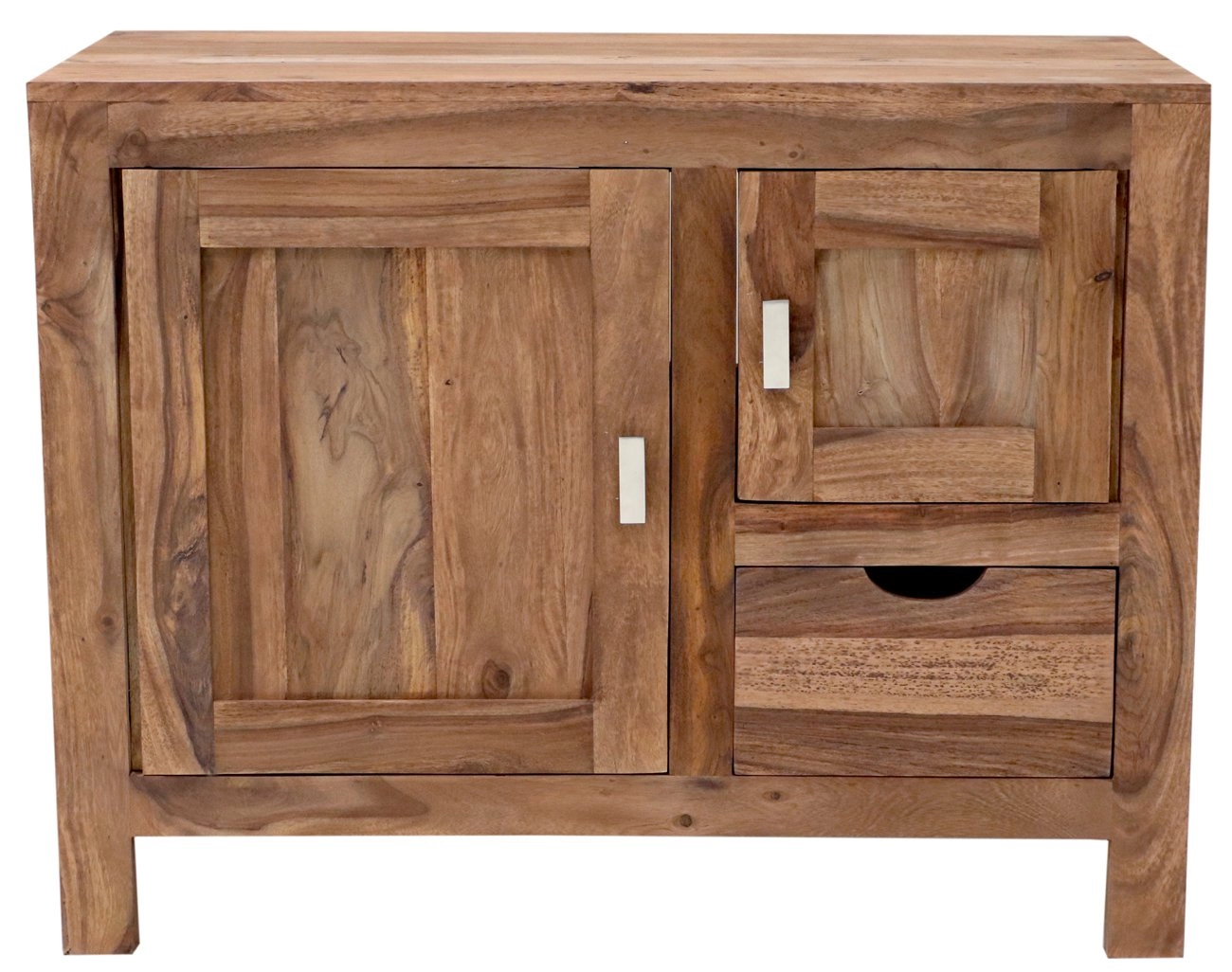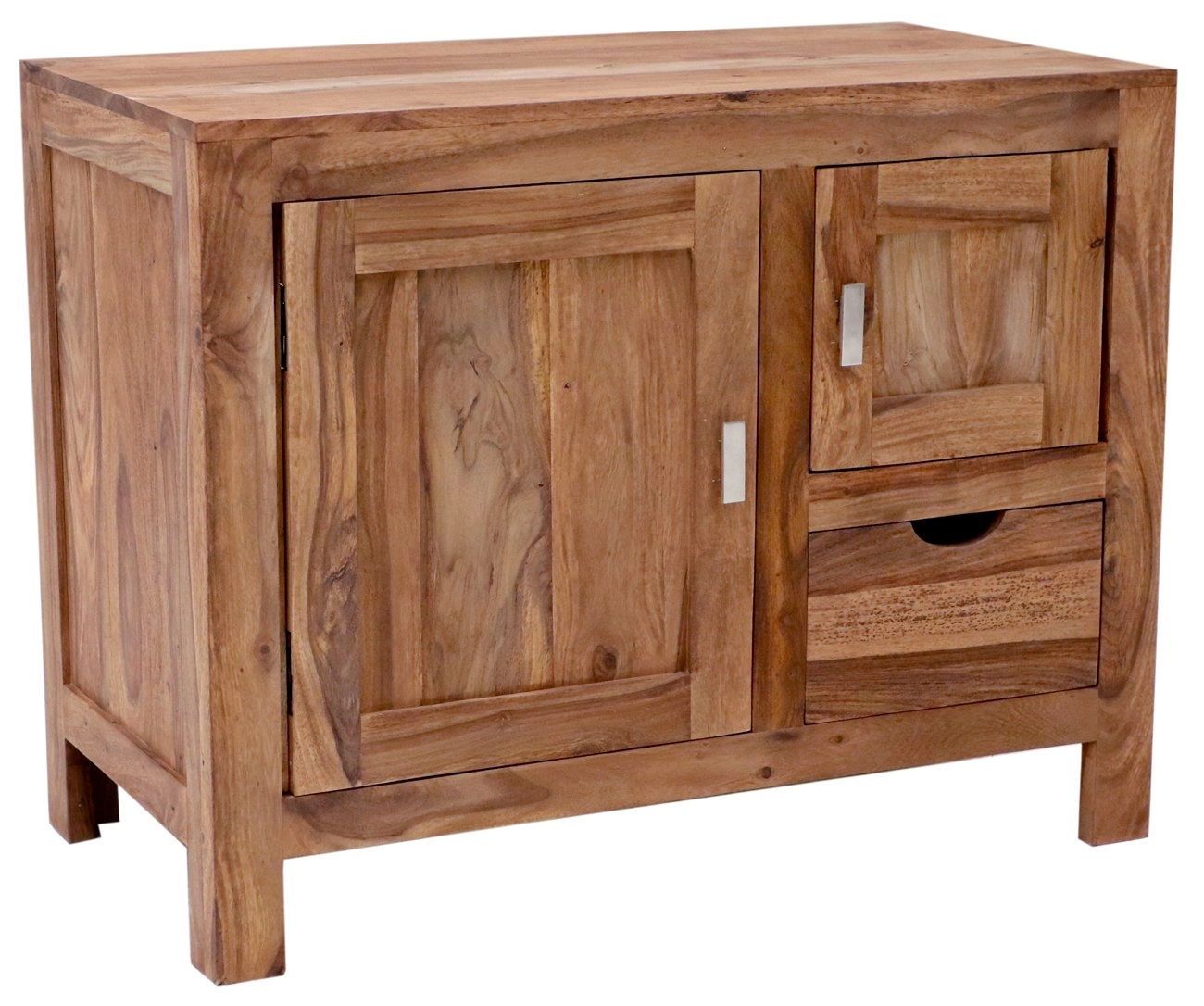 Indický palisandr je známý svou odolností a půvabnou texturou, díky čemuž se každá skříňka stává unikátním uměleckým dílem. Skříňka disponuje dvěma dvířky a jednou zásuvkou, což poskytuje dostatek úložného prostoru pro veškeré koupelnové potřeby. Je nejen praktická, ale také esteticky působivá, a to díky nádherným přírodním odstínům dřeva.
