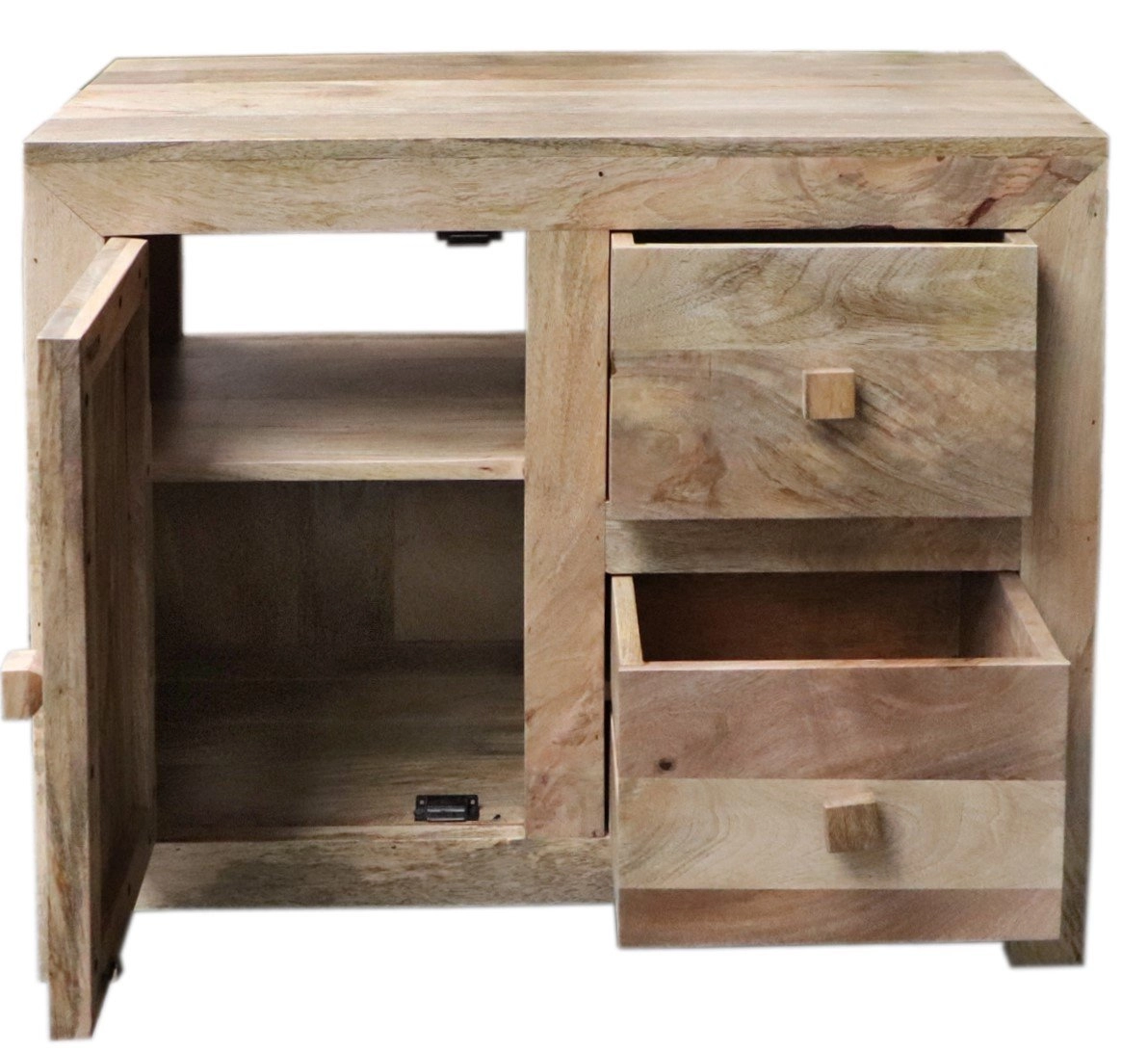Masivní skříňka pod umyvadlo obsahuje dvě prostorné zásuvky a jednu skříňku, které nabízejí dostatek místa pro uložení ručníků, koupelnové kosmetiky či čistících prostředků. Kombinace elegantní indické estetiky a funkčního designu vytváří dokonalý kousek, který doplní vaši koupelnu jak prakticky, tak vizuálně. Díky univerzálním rozměrům 80 cm na šířku, 45 cm do hloubky a 70 cm na výšku se skvěle hodí téměř do jakéhokoliv koupelnového interiéru.