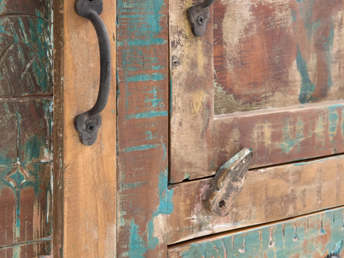 Mango dřevo je vysoce ceněné pro své jemné zrnitosti a teplé tóny, které skříňce dodávají jedinečný charakter, zatímco veselé barvy odrážejí svěží atmosféru tropického ráje. S rozměry 150×50×75 cm poskytuje dostatek prostoru pro všechny vaše koupelnové potřeby a doplňky, zároveň se elegantně vejde do většiny koupelnových prostorů. Tento unikátní kus nábytku je ideální volbou pro ty, kteří chtějí své koupelně dodat osobitý styl a zároveň si cení kvality a funkčnosti.