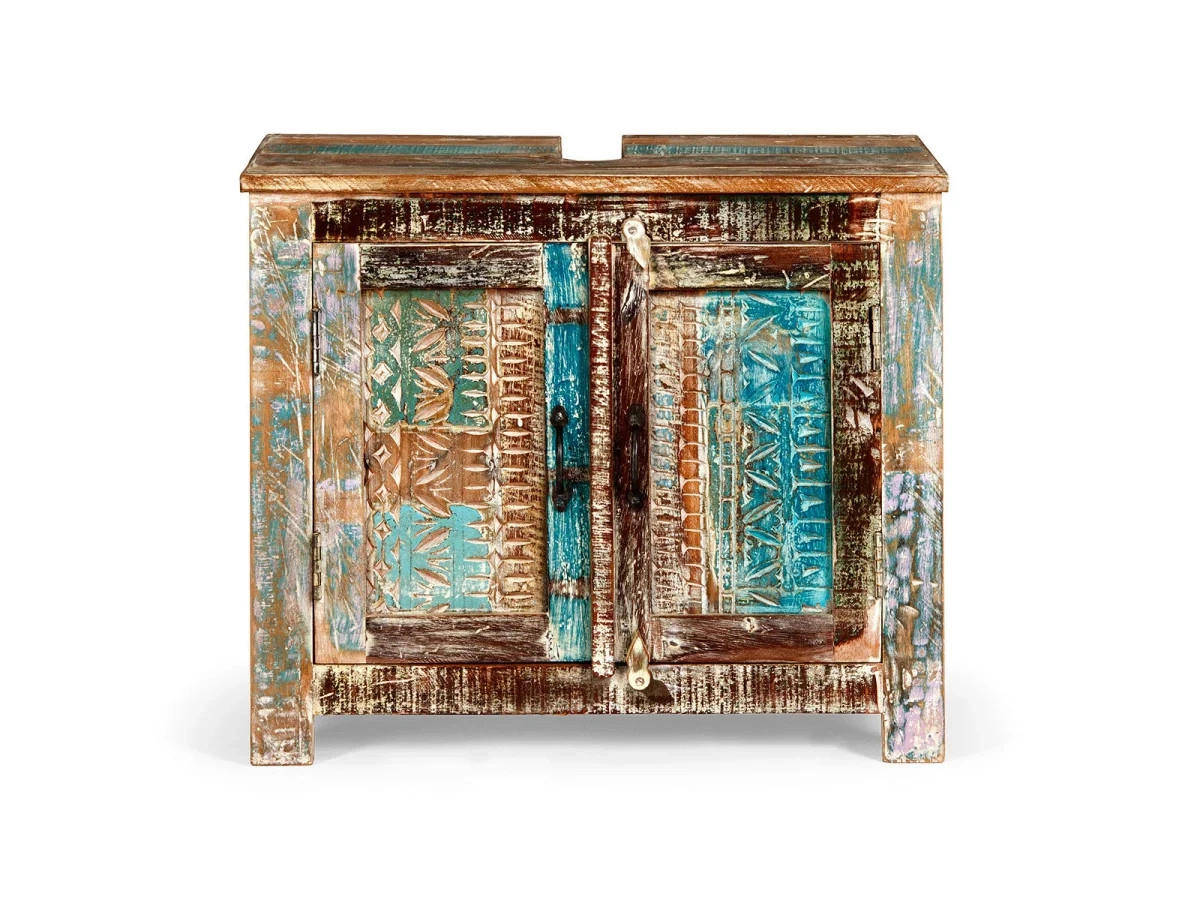 Vyrobená z kvalitního mangového dřeva, které je známé svou pevností a odolností, skříňka pod umyvadlo Blue Lagoon je zárukou skvělého zpracování a jedinečnosti každého kusu. Každý detail, od jemně zaoblených hran po barevné akcenty, je promyšlený tak, aby skříňka nejen splnila funkci, ale také sloužila jako stylový prvek vaší koupelny. Představte si, jak se vám ráno lépe vstává, když vás vítá tato nádherná skříňka, která dokáže proměnit obyčejný prostor v oázu klidu a pohody. Nečekejte, přidejte si do svého domova kousek inspirovaný přírodou a užijte si harmonii, kterou vám Blue Lagoon nabízí.