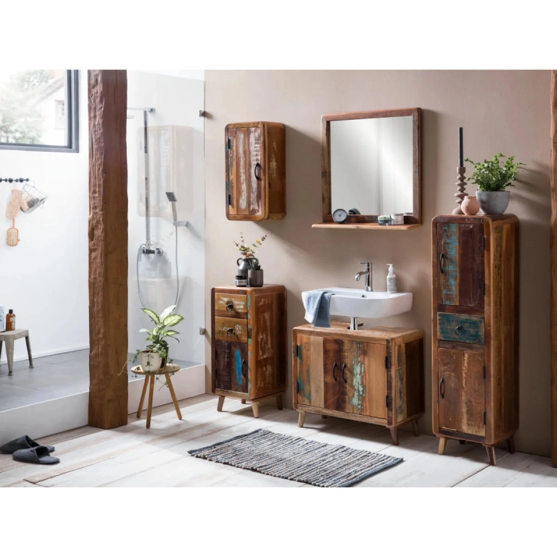 Objevte kouzlo masivní umyvadlové skříňky Calcutta II, která je vyrobena z recyklovaného dřeva a zaujme svým vícebarevným lakovaným provedením. Tato unikátní a ekologická skříňka o rozměrech 70×35×60 cm přidá do vaší koupelny styl a praktičnost.