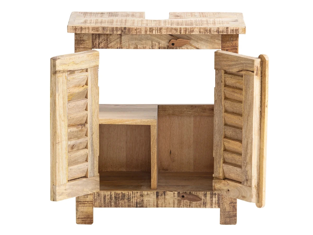 Objevte eleganci a praktičnost v jednom s masivní skříňkou pod umyvadlo Caribou, vyrobenou z kvalitního mangového dřeva s lakovaným hnědým povrchem. Tato kompaktní skříňka (52×30×60 cm) dokonale zapadne do každé koupelny a nabídne dostatek prostoru pro vaše nezbytnosti.